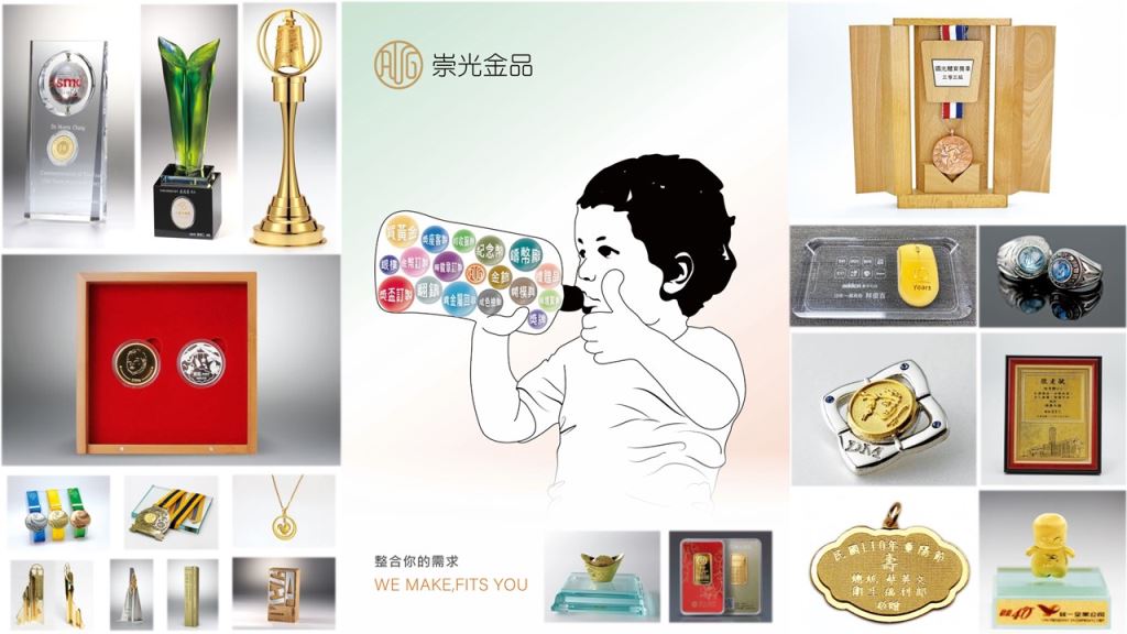 客製禮贈品基礎需要開模、打樣、生產製作等工序,崇光金品的開模方式有金屬壓鑄模與脫蠟翻舊模,依溝通確認的設計稿完成開模打樣作樣,客戶確認後即可進行生產過程,金屬製作完成約需15天,異材質需視是否有庫存量才能確認製作天數。每次製作過程由專案人員確認的零件及雕刻狀況是否符合標準,倘有不符會退回重新製作。