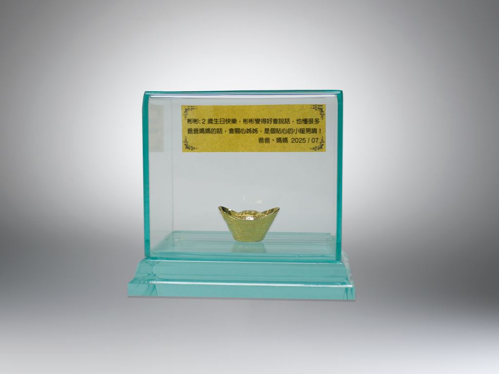 崇光金品提供企業與個人專屬的訂製服務,可在金箔上客製孩子的姓名、