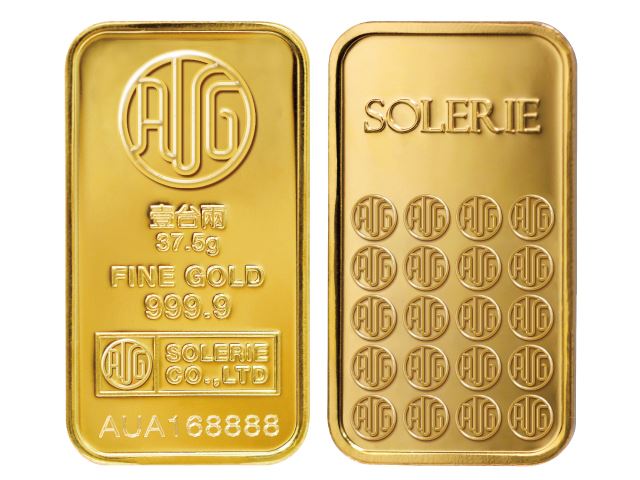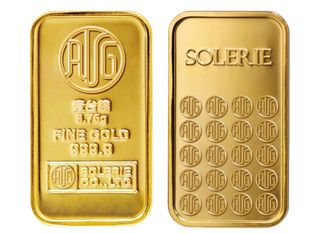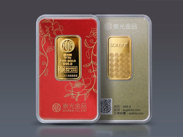 3.國內鑄金廠以公斤條原料,鑄造發行的純金9999品牌金條:如崇光金品AUG條塊。