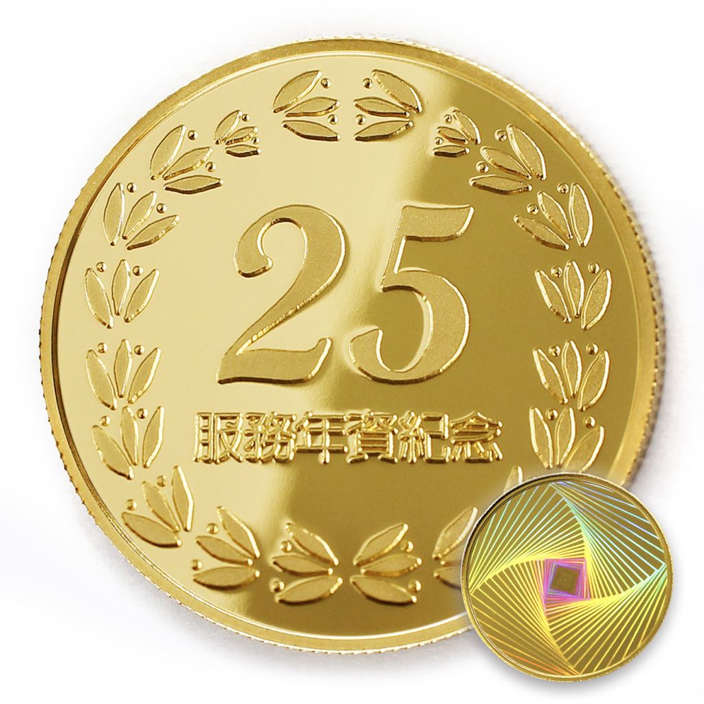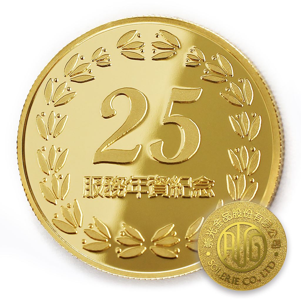 正面為年資25桂環圖樣,背面貼覆客製化金箔