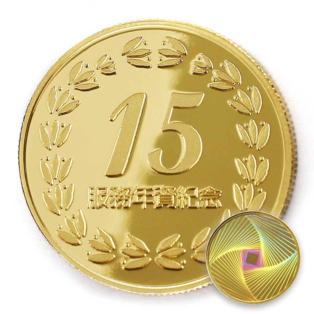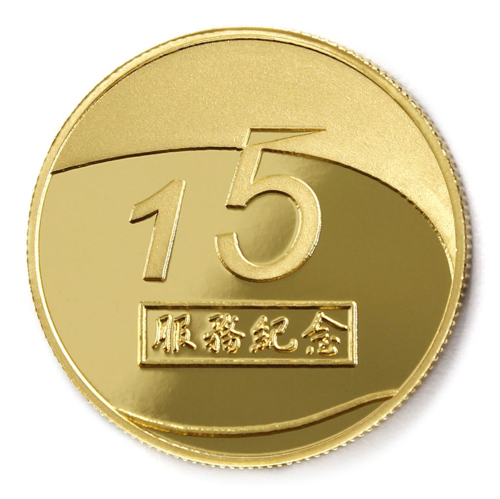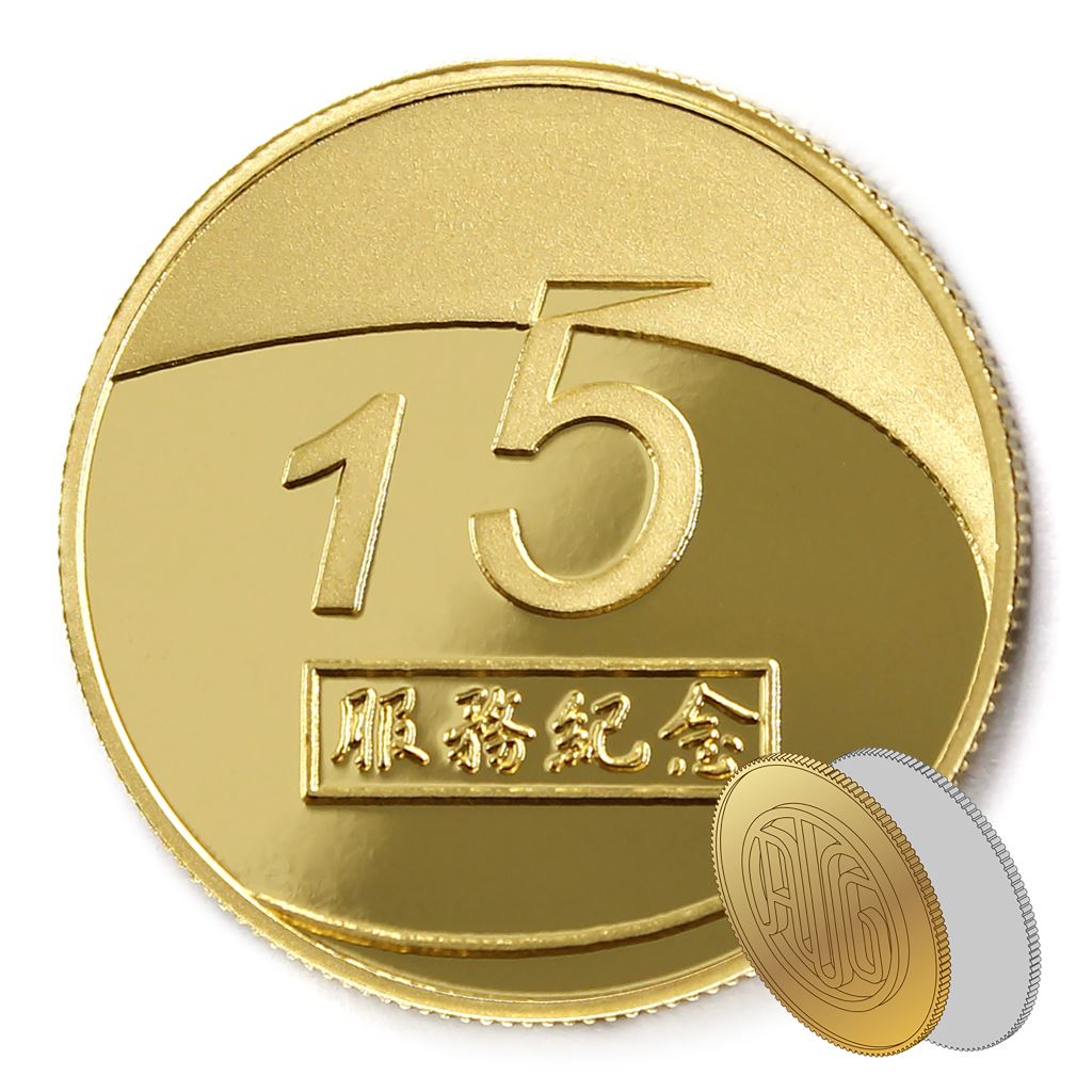 正面為年資15融合圖樣,背面為貼覆客製化金箔
