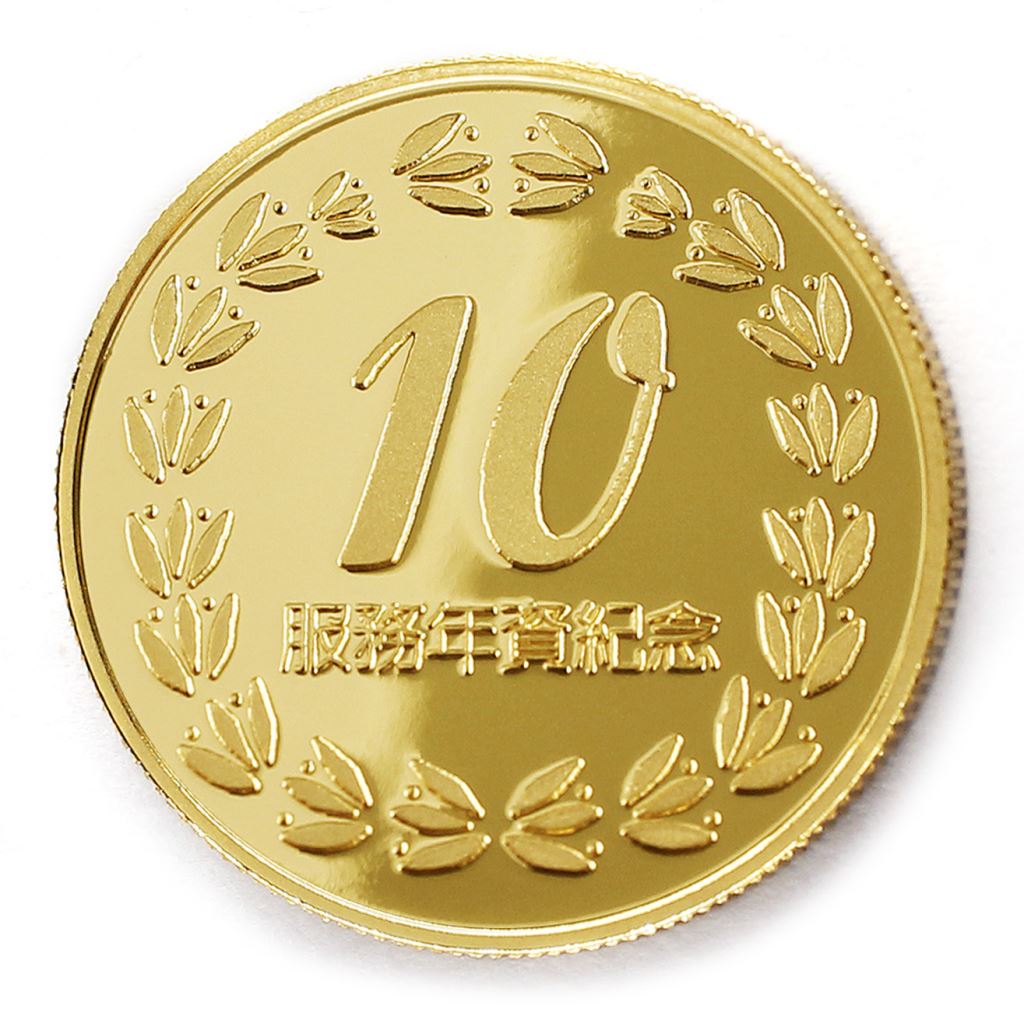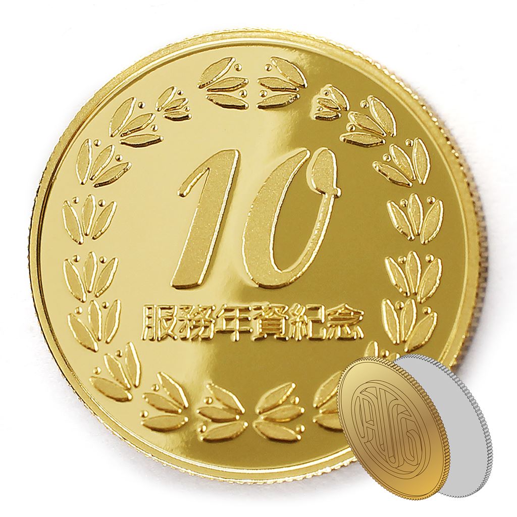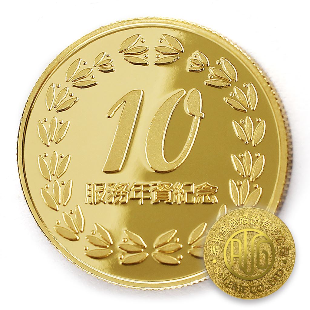 正面為年資10桂環圖樣,背面為貼覆客製化金箔