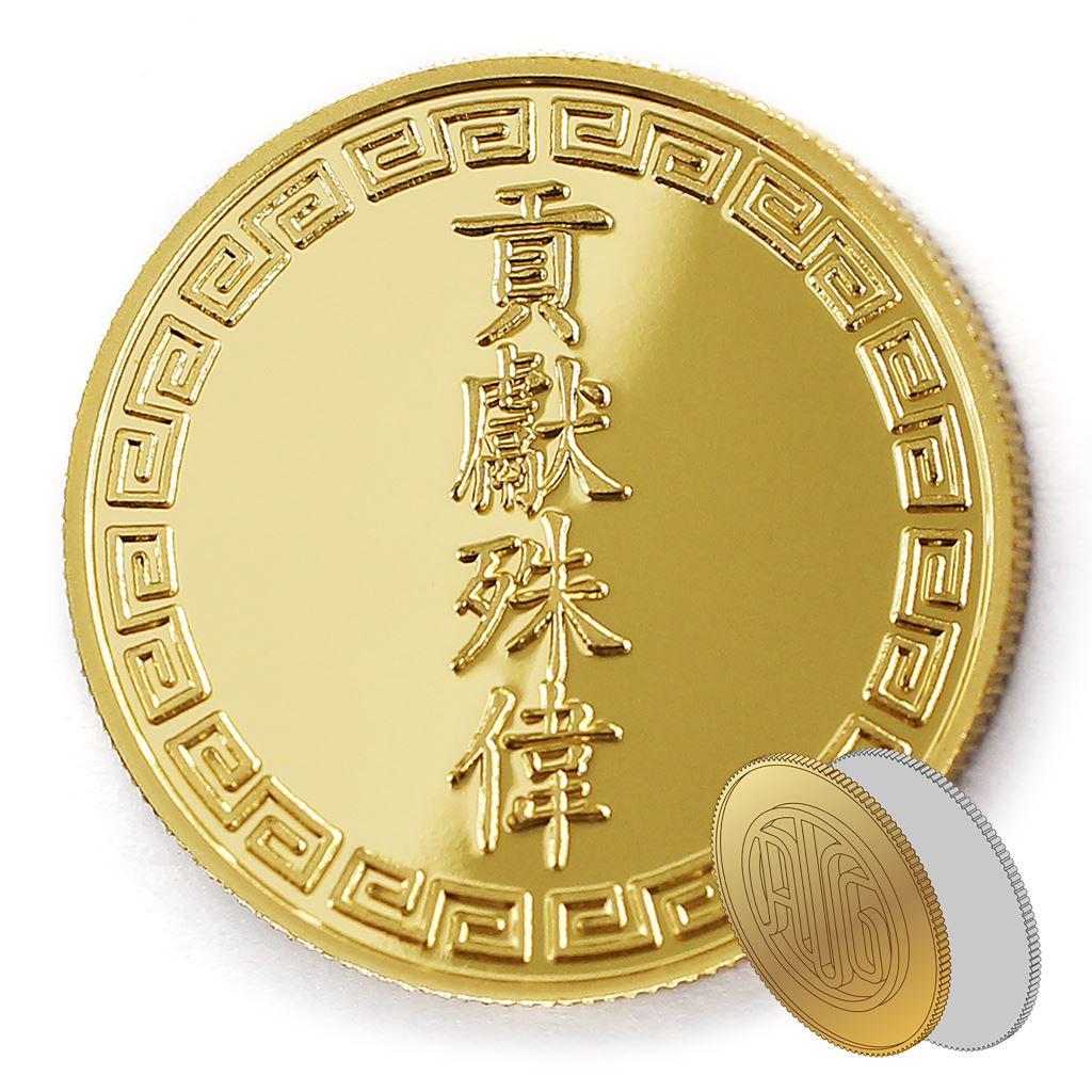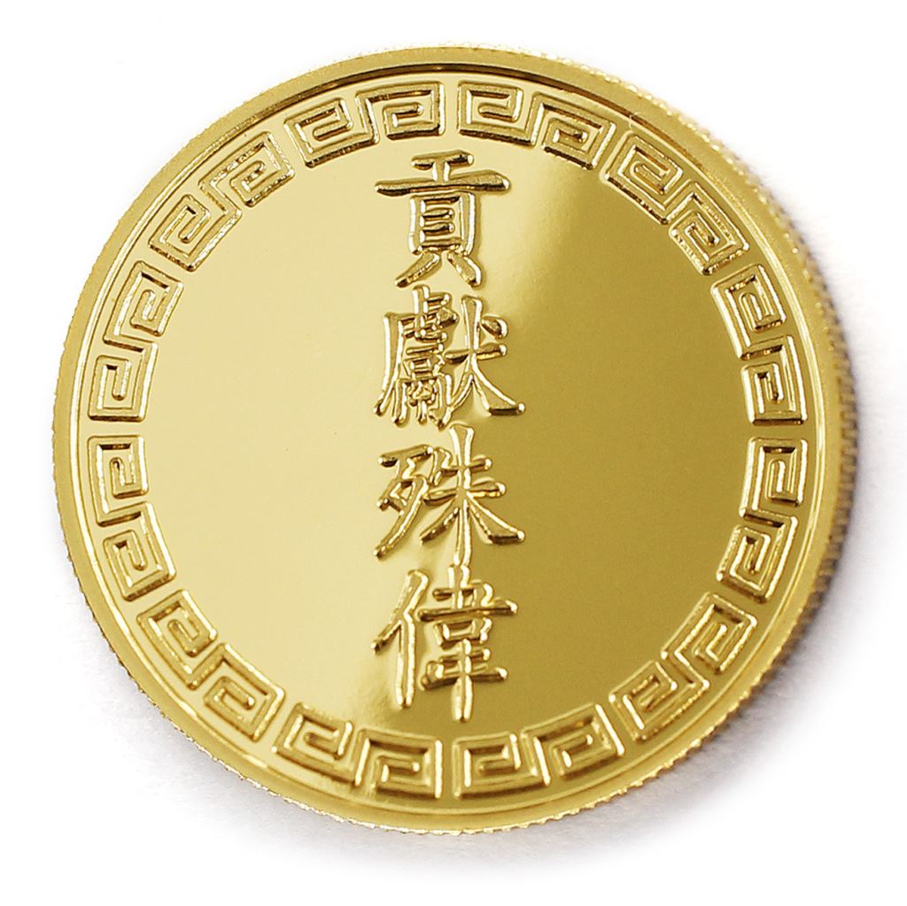 正面為貢獻殊偉圖樣,背面為貼覆客製化金箔
