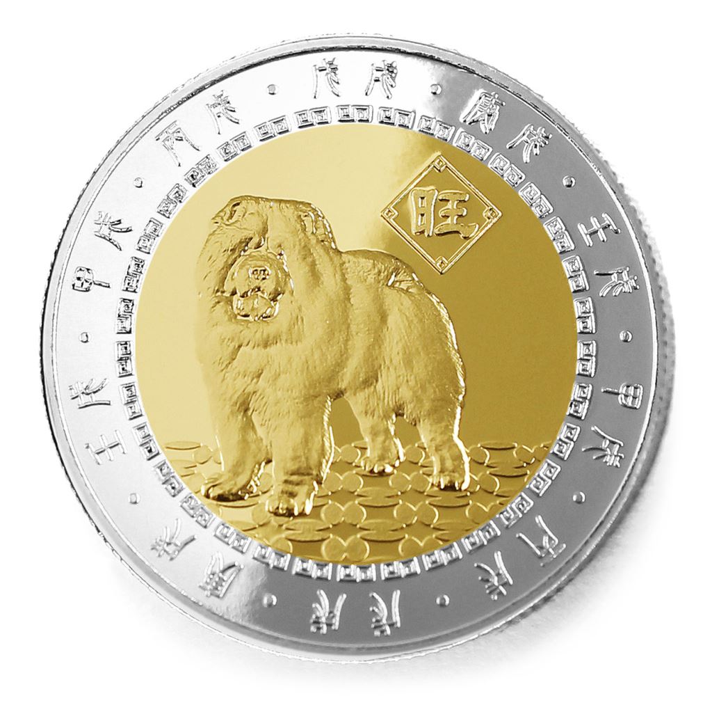 正面為金幣狗年生肖圖樣,背面為銀幣鏡面CNC雕刻