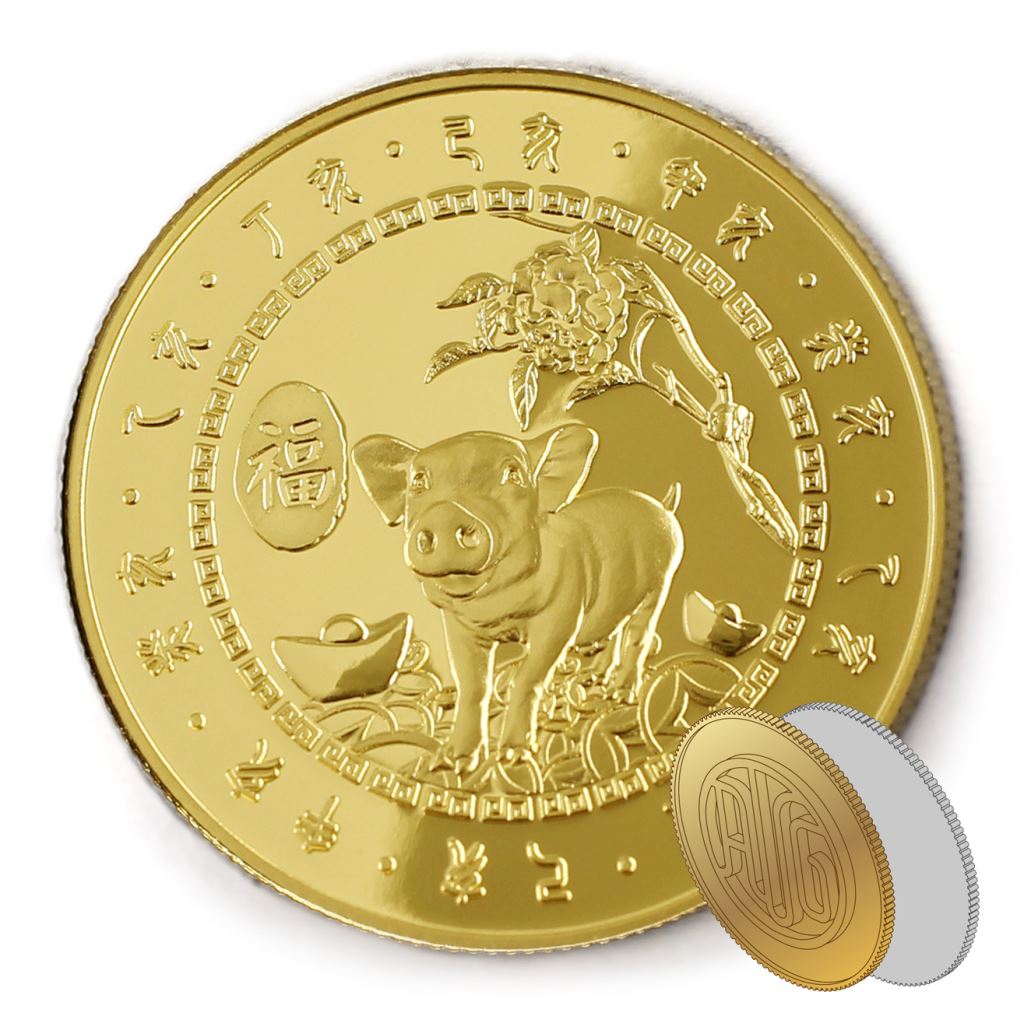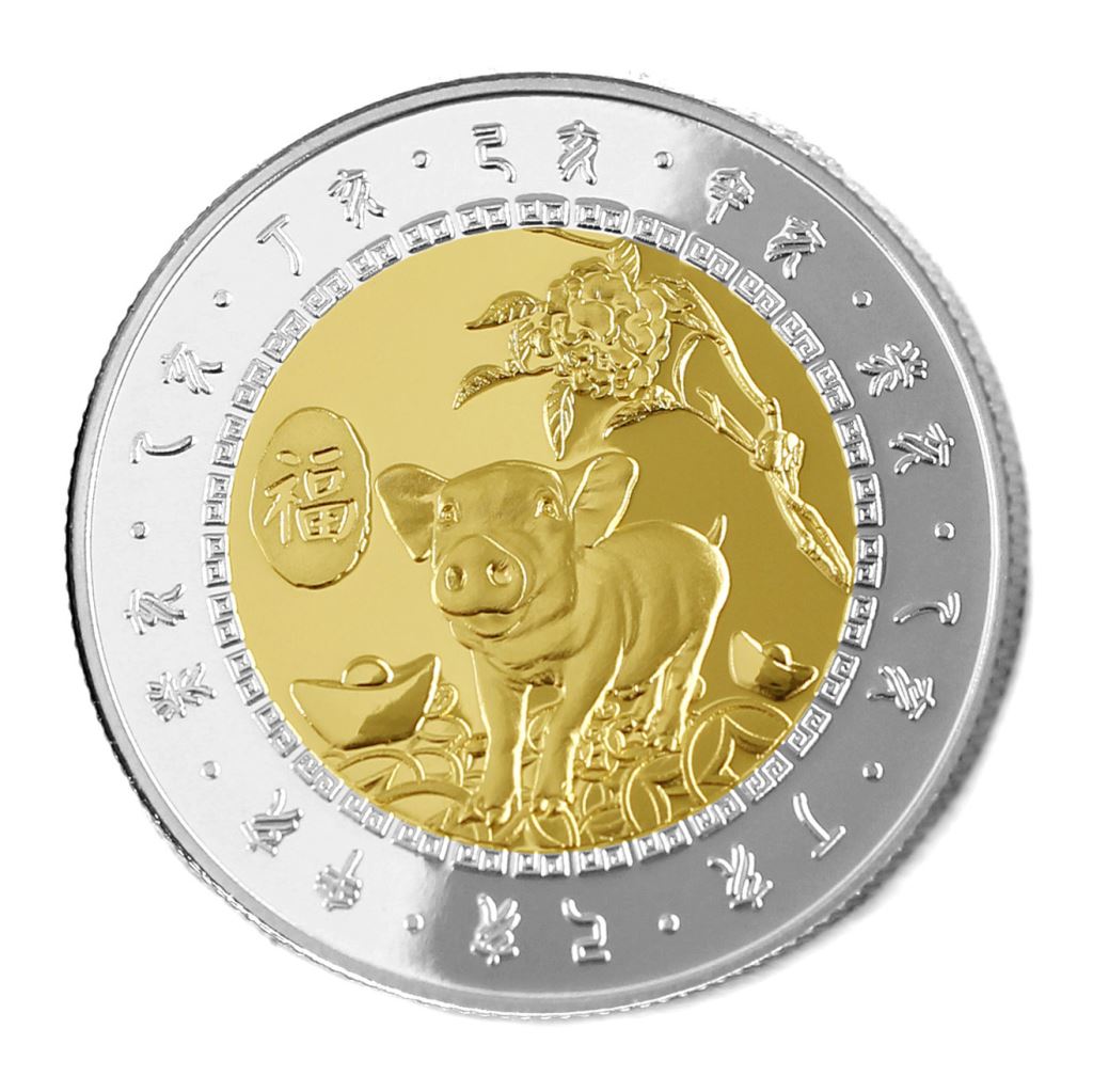 正面為金幣豬年生肖圖樣,背面為銀幣鏡面CNC雕刻