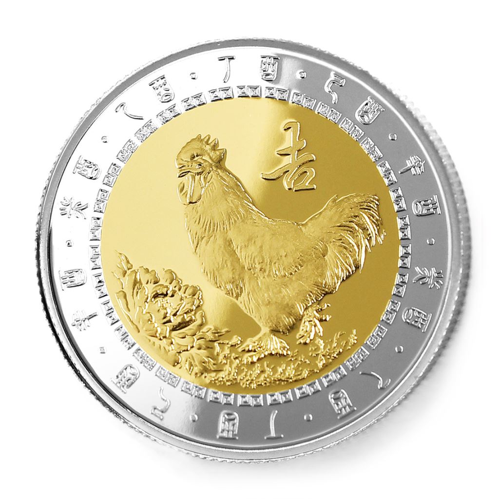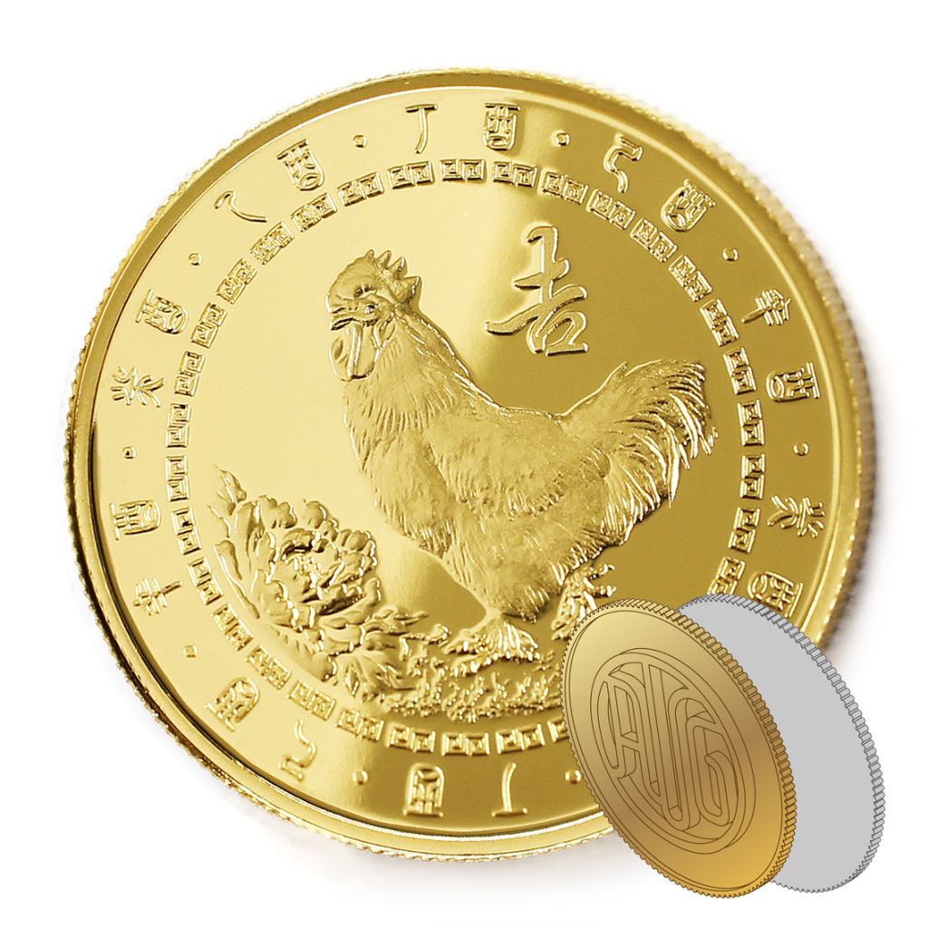 正面為金幣雞年生肖圖樣,背面為銀幣鏡面CNC雕刻