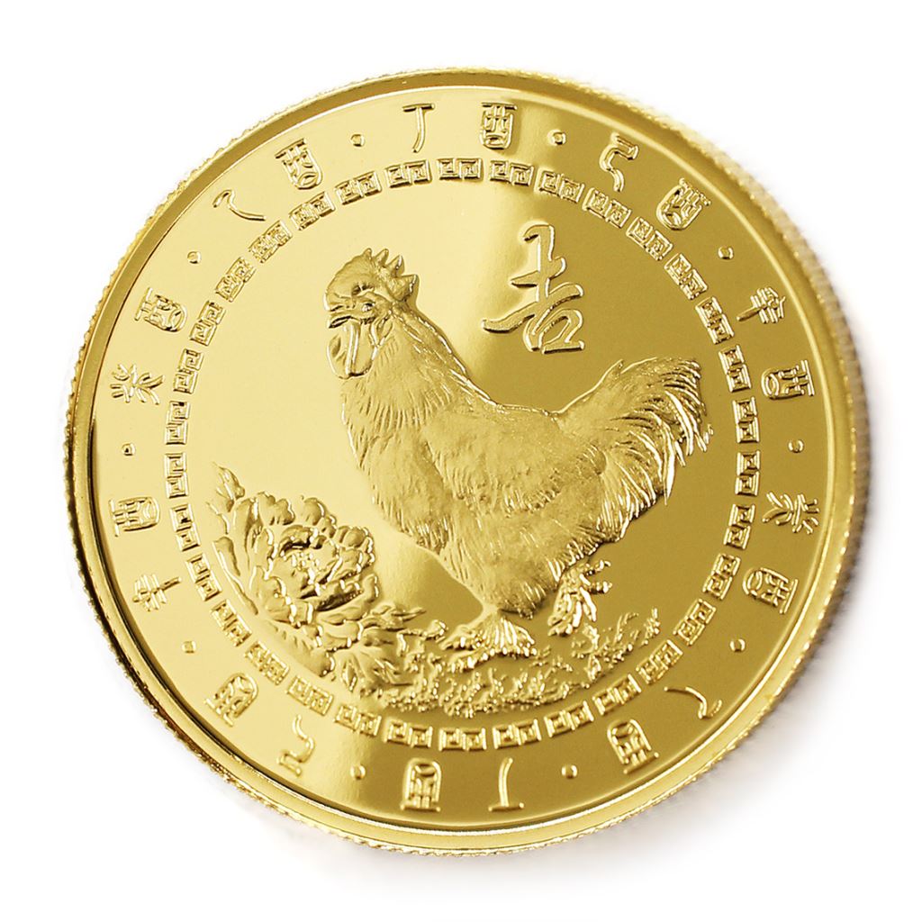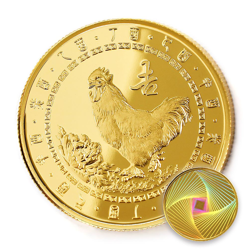 正面為金幣雞年生肖圖樣,背面為鏡面客製化CNC雕刻