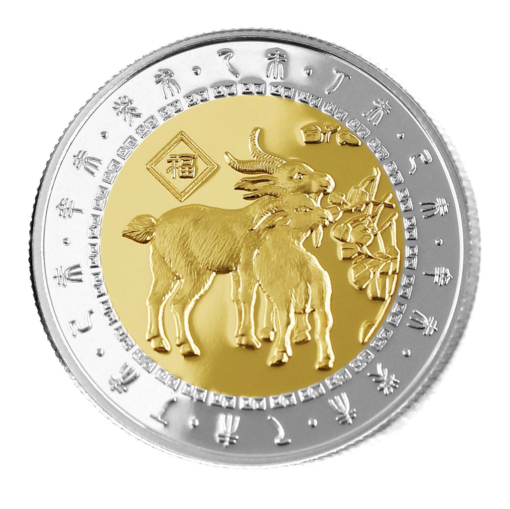 正面為金幣羊年生肖圖樣,背面為銀幣鏡面CNC雕刻