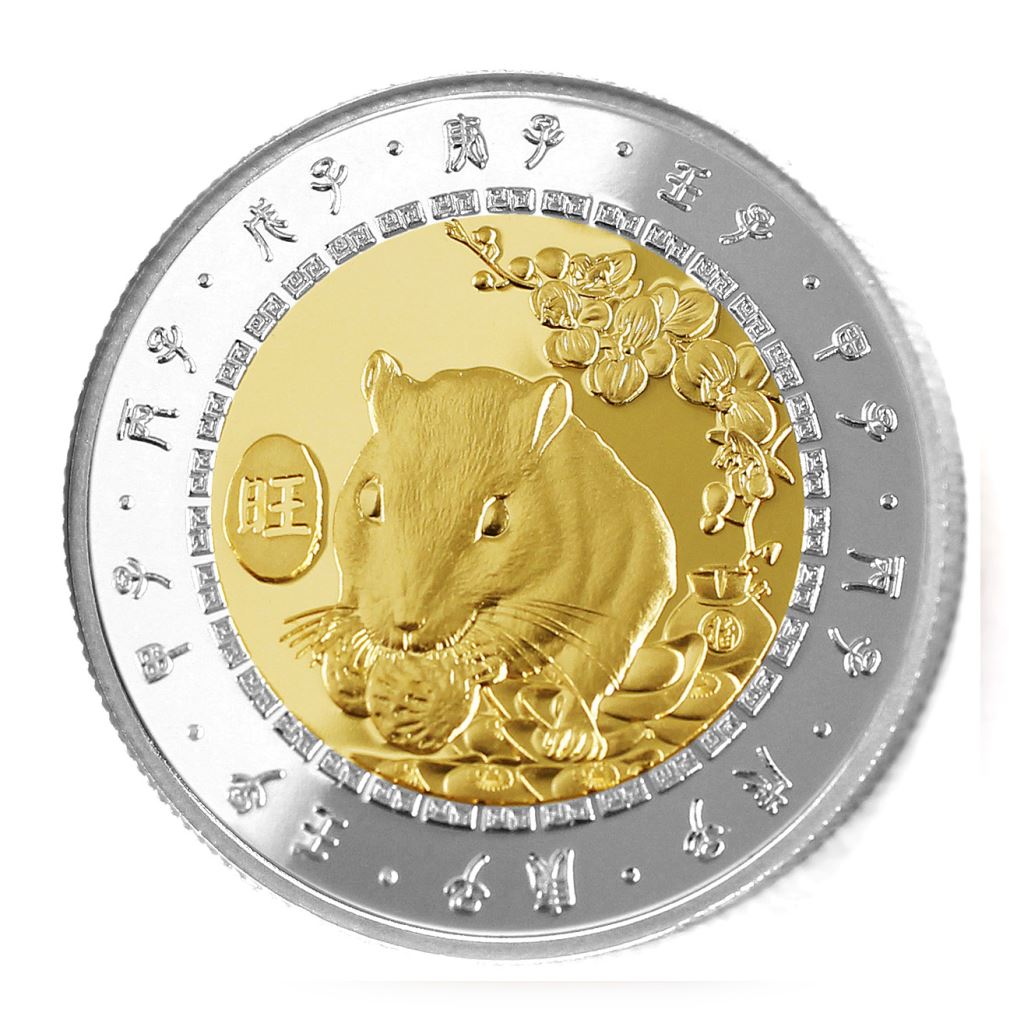 正面為金幣鼠年生肖圖樣,背面為銀幣鏡面CNC雕刻