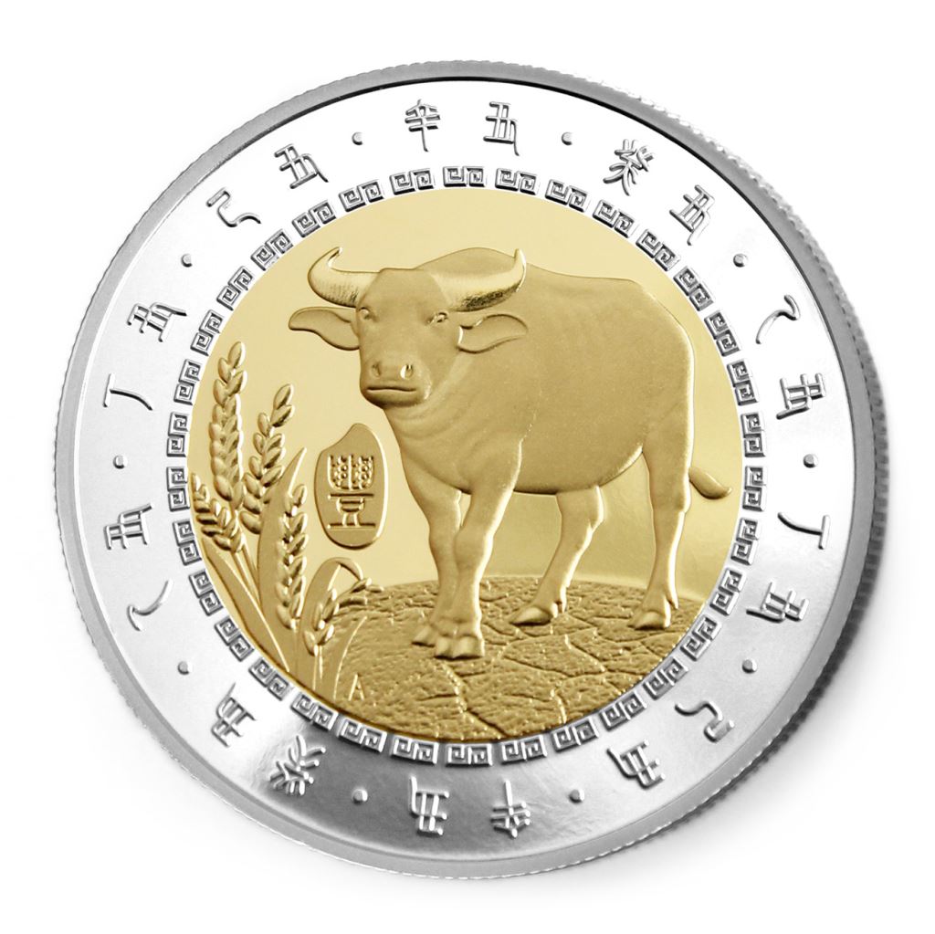 正面為金幣牛年生肖圖樣,背面為銀幣鏡面CNC雕刻