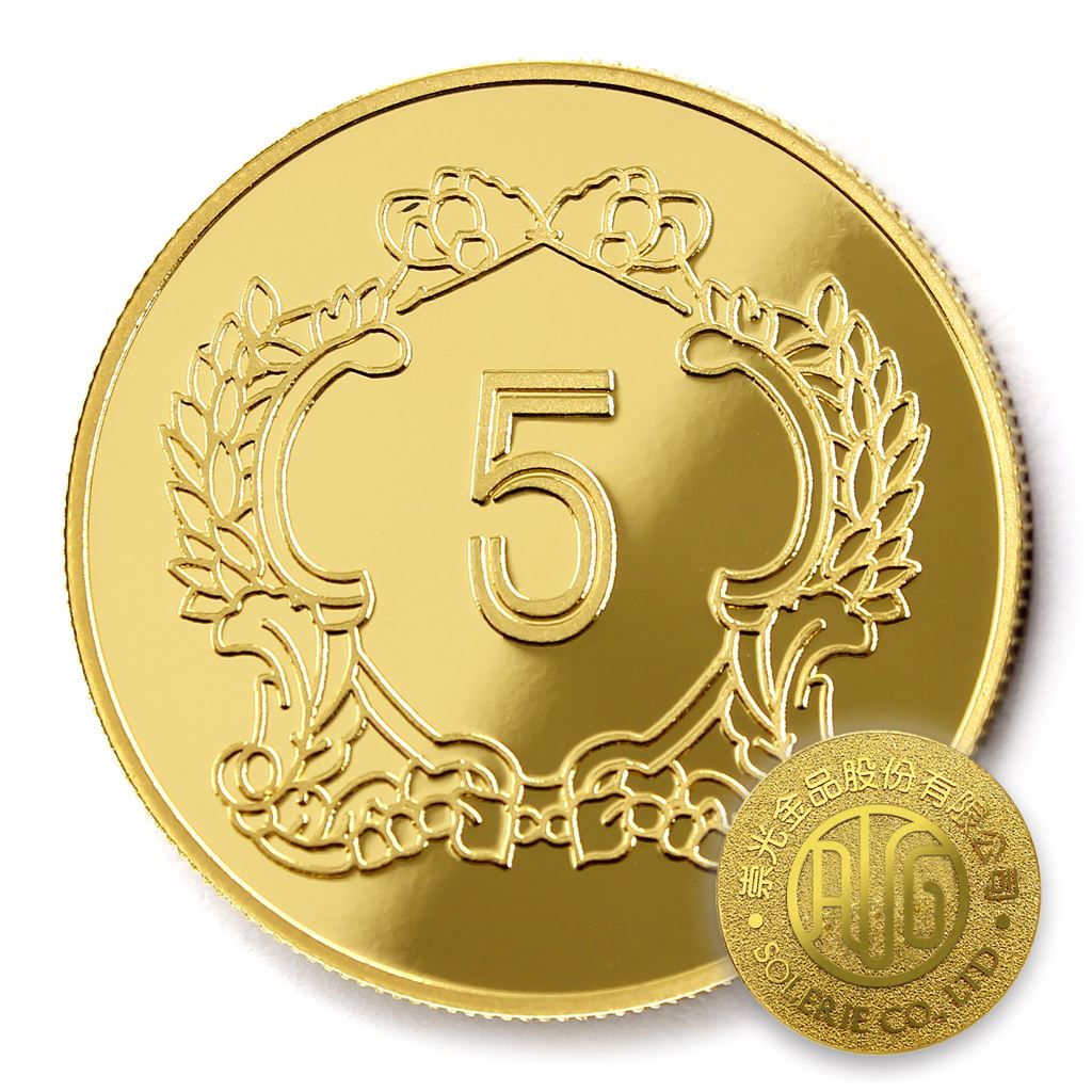 正面為金幣年資5榮耀圖樣,背面為銀幣鏡面CNC雕刻