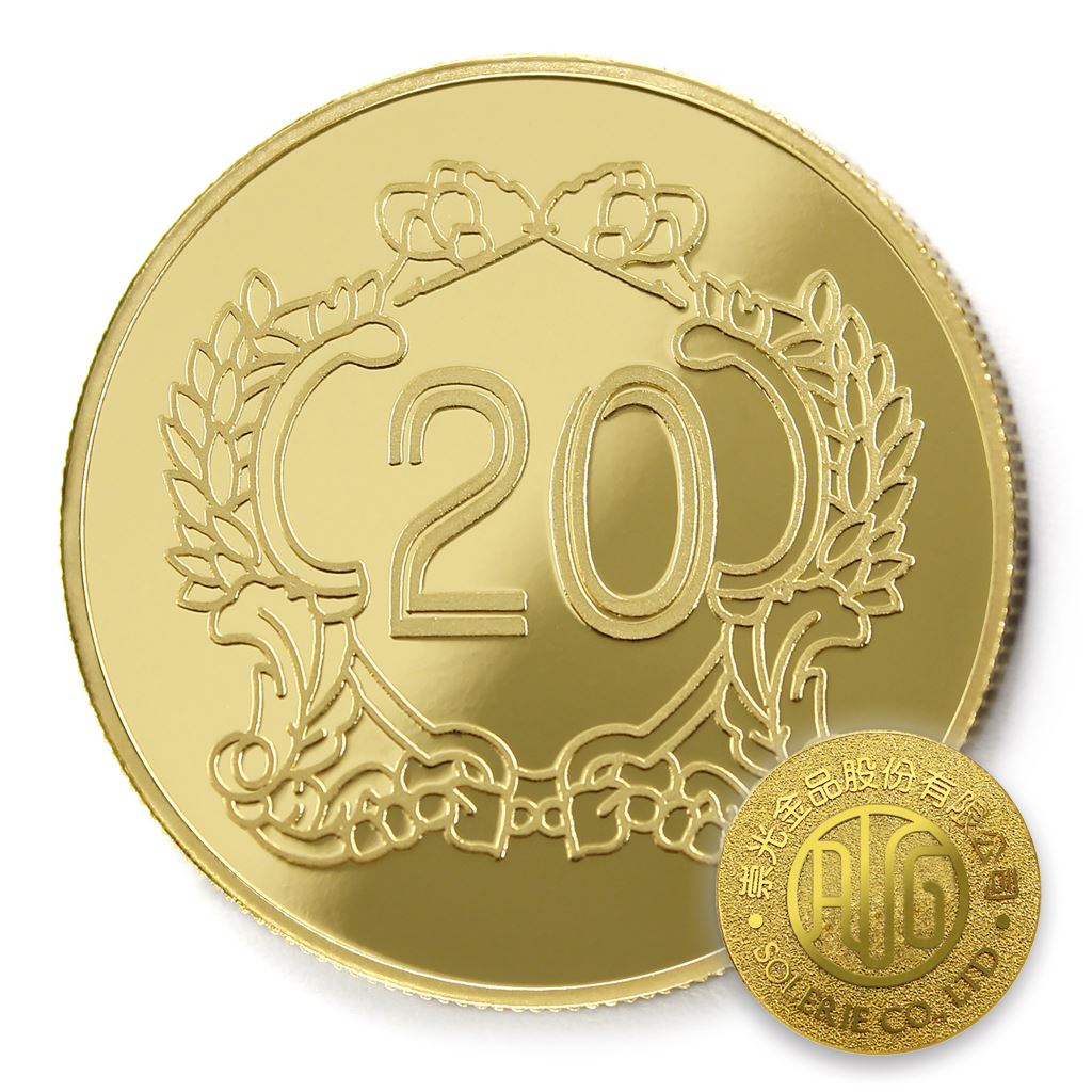 正面為金幣年資20榮耀圖樣,背面為銀幣鏡面CNC雕刻