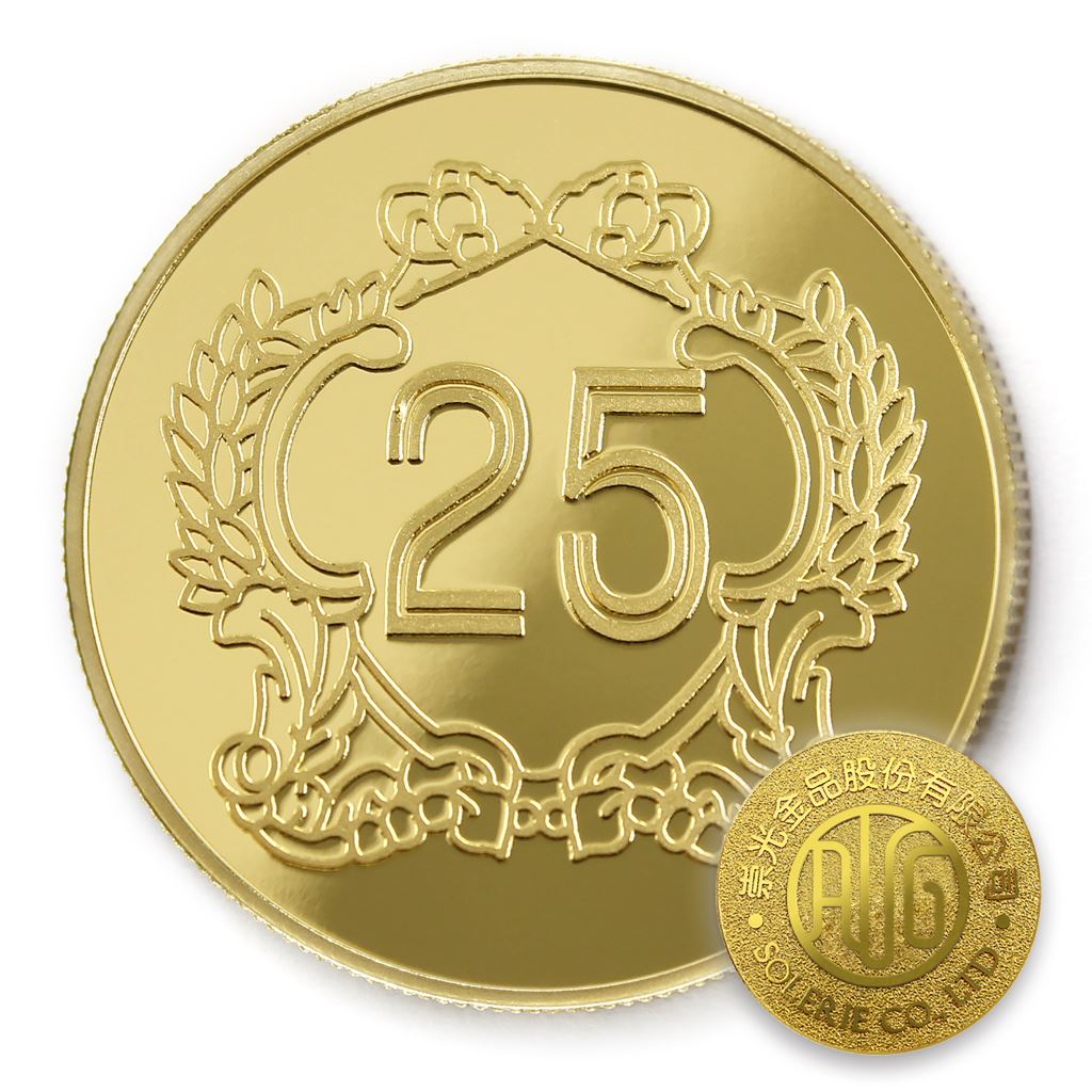 正面為金幣年資25榮耀圖樣,背面為銀幣鏡面CNC雕刻