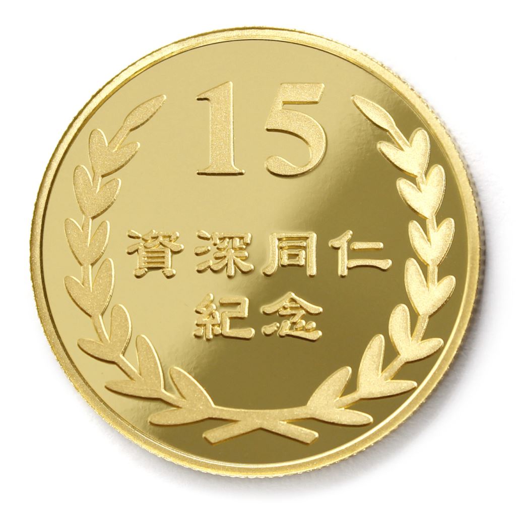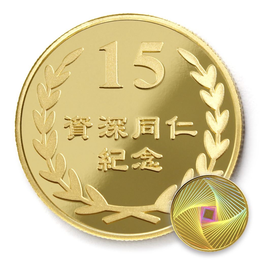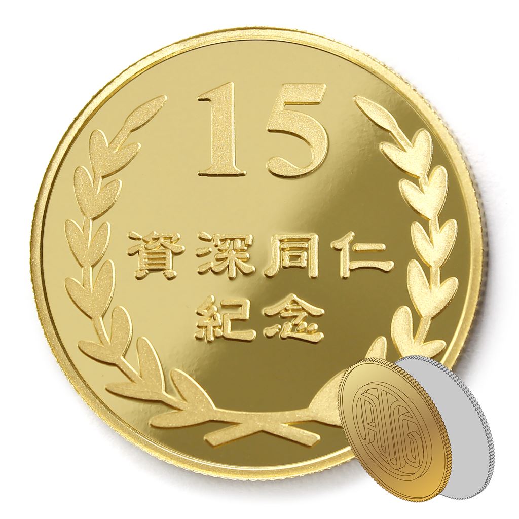正面為年資15桂冠圖樣,背面貼覆客製化金箔