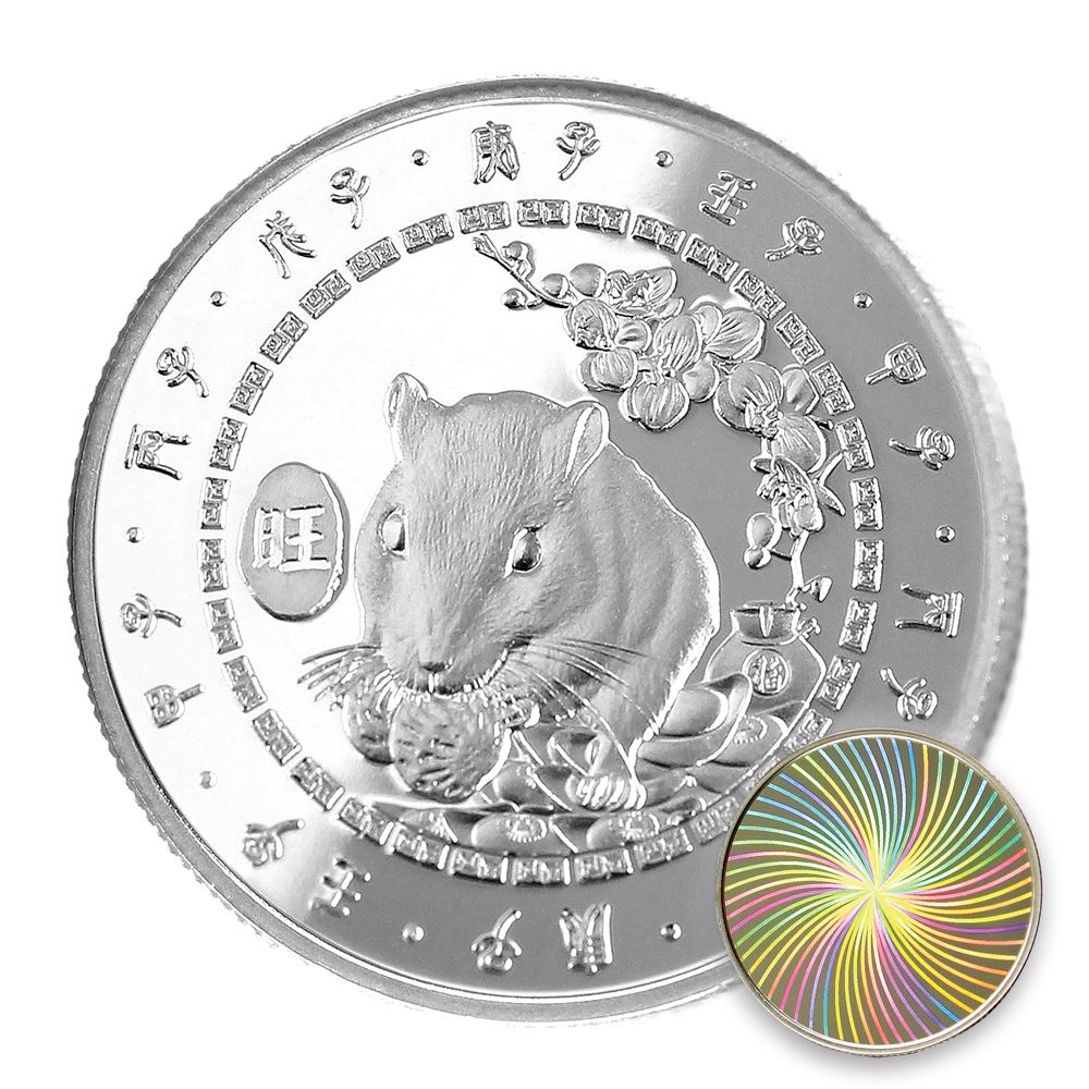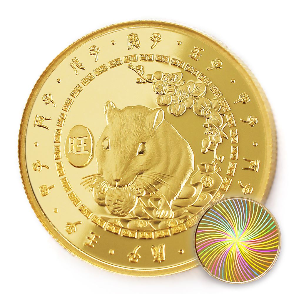 正面為生肖鼠年圖樣,背面為幻彩客製化CNC雕刻