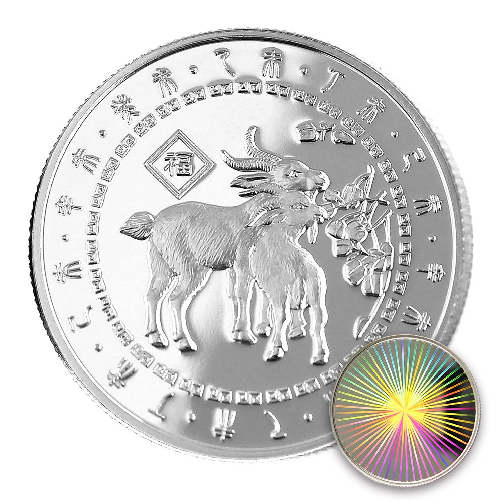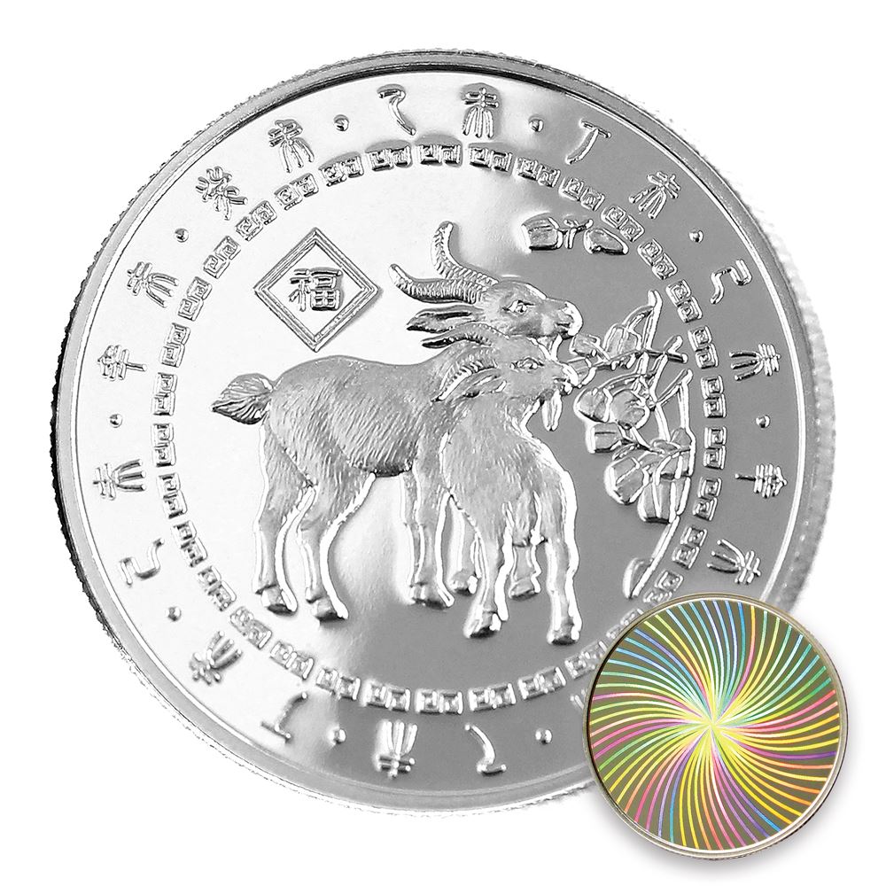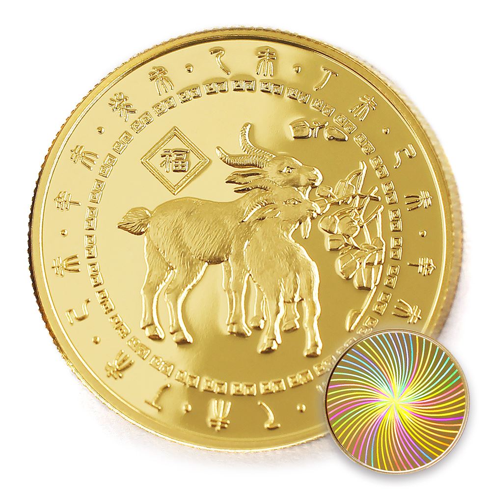 正面為生肖羊年圖樣,背面為幻彩客製化CNC雕刻