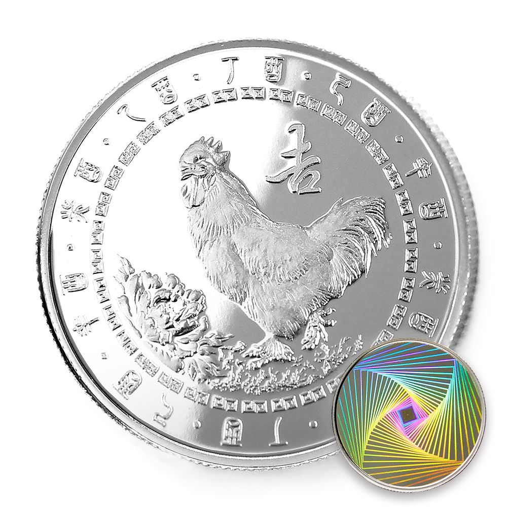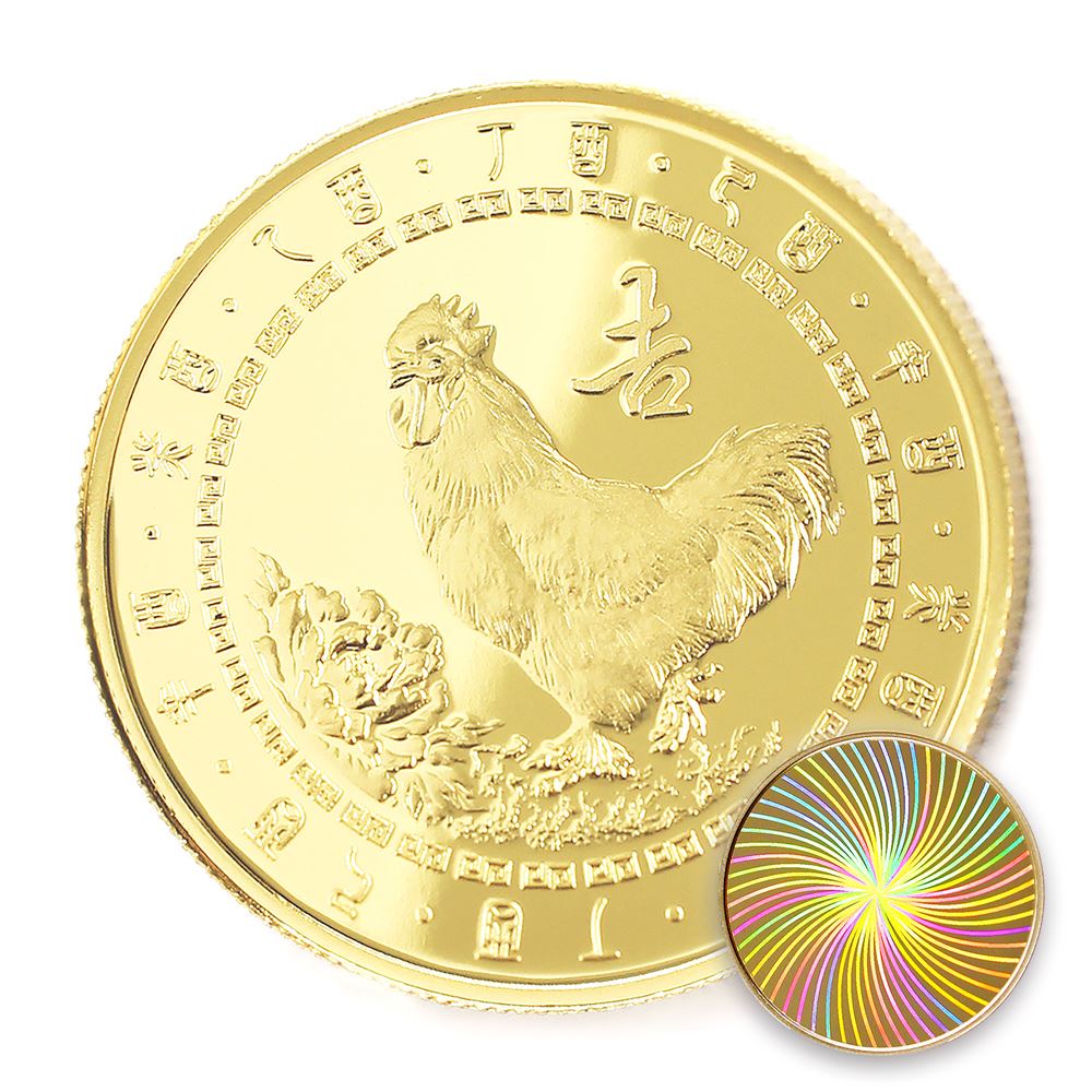 正面為生肖雞年圖樣,背面為幻彩客製化CNC雕刻