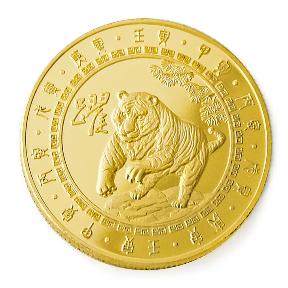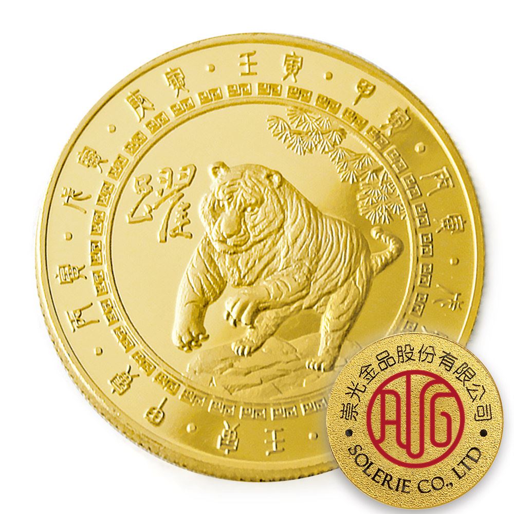 正面為虎年生肖圖樣,背面貼覆客製化金箔