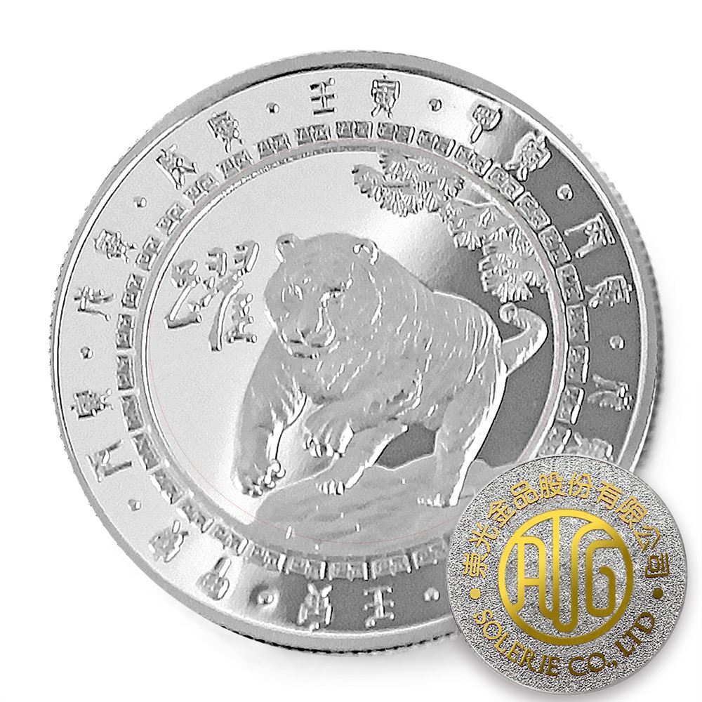 正面為虎年生肖圖樣,背面貼覆客製化銀箔