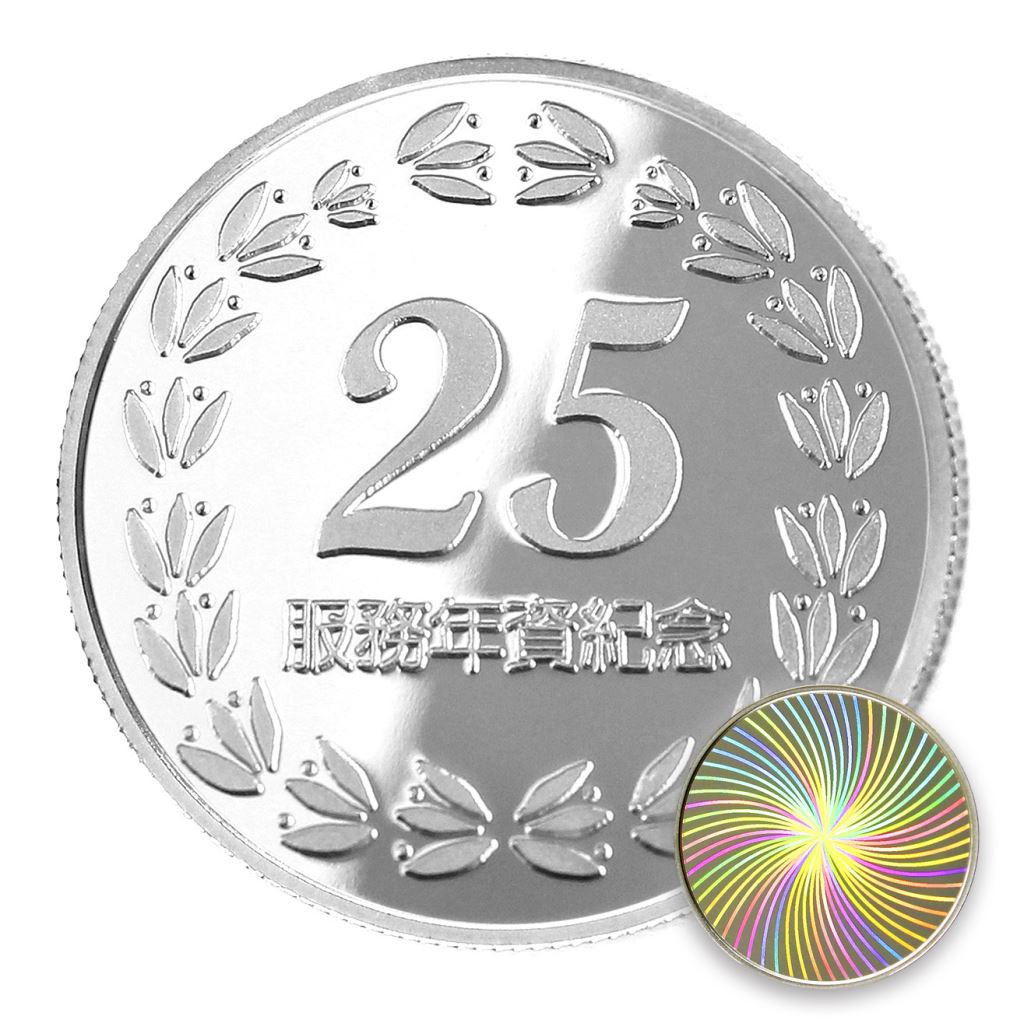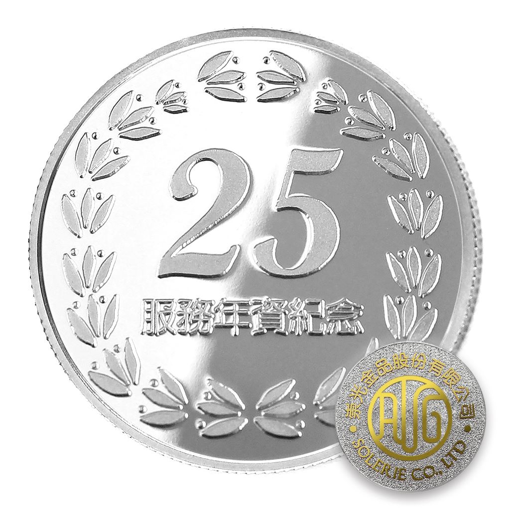 正面為年資25桂環圖樣,背面貼覆客製化銀箔