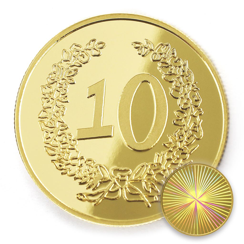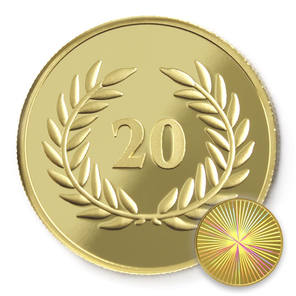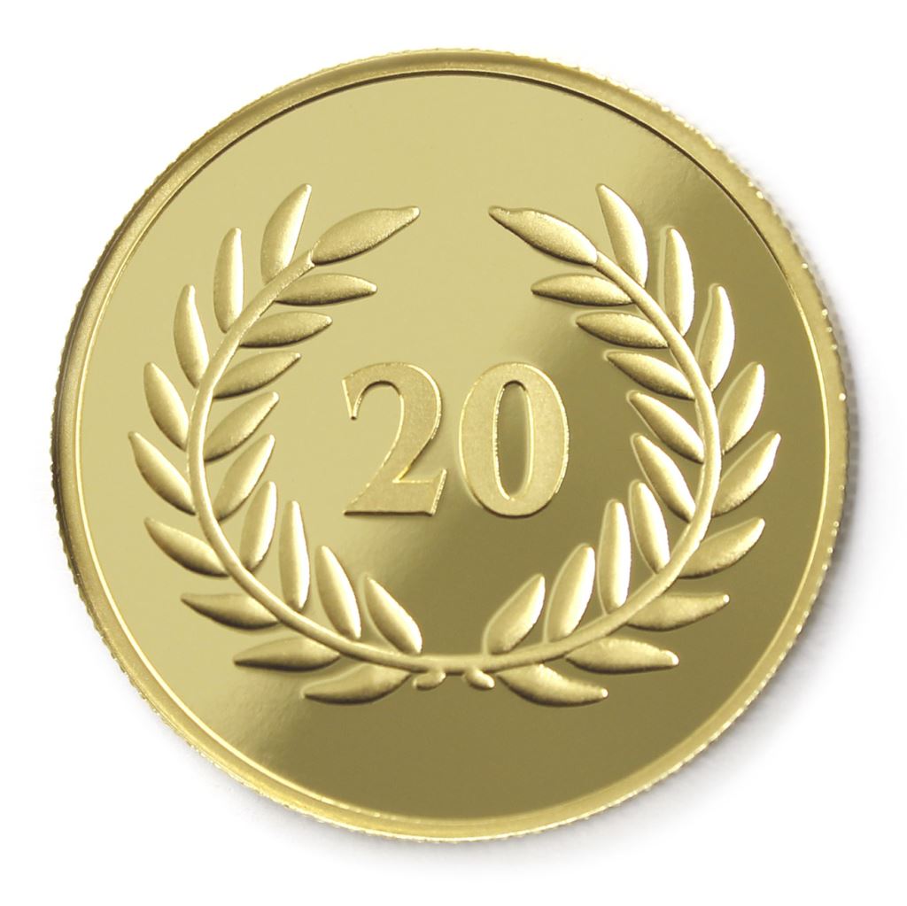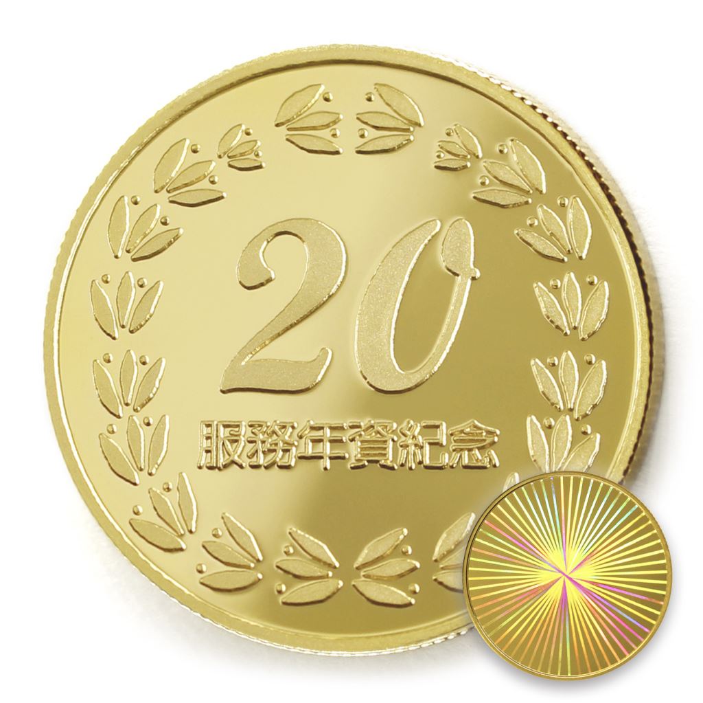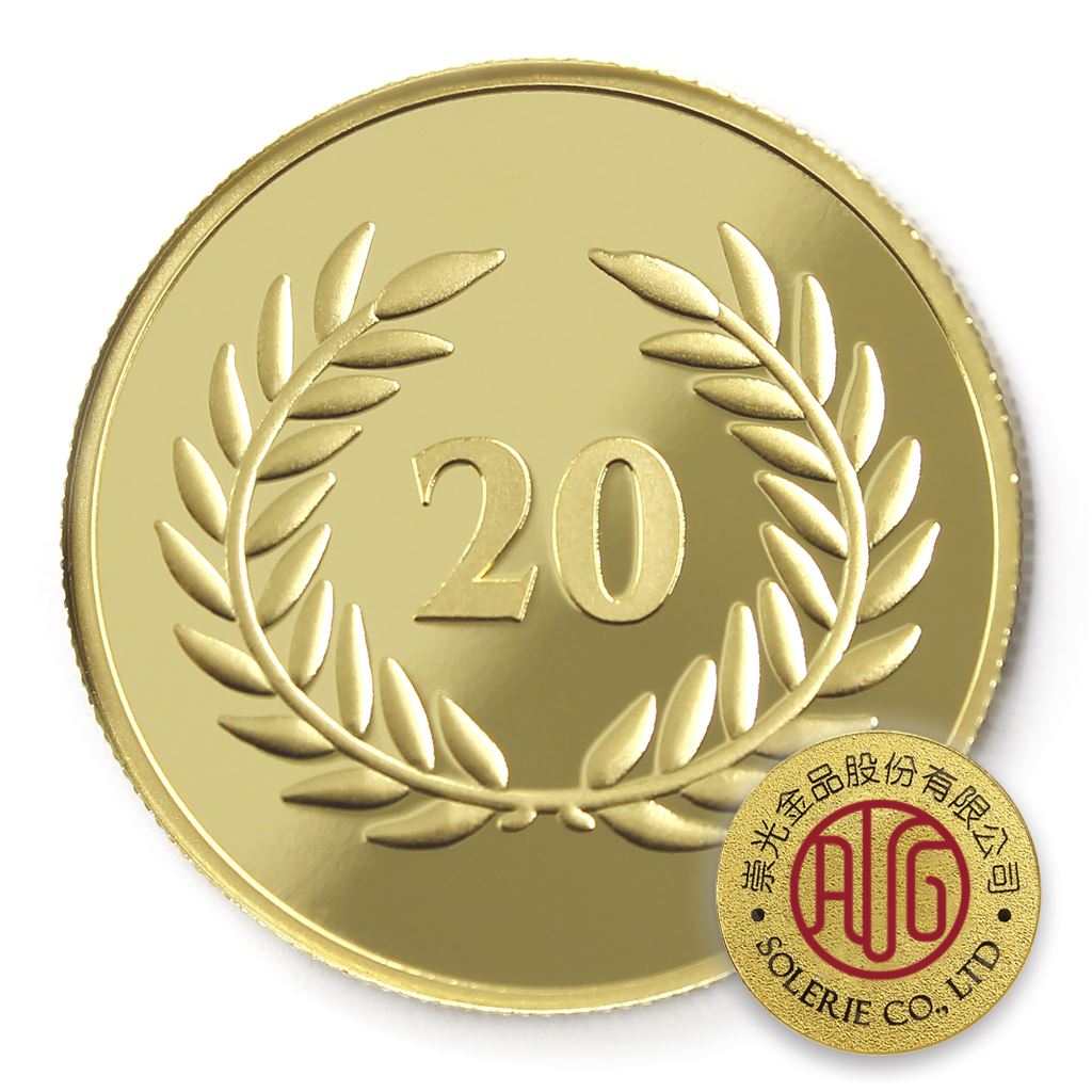 正面為年資20桂環圖樣,背面貼覆客製化金箔