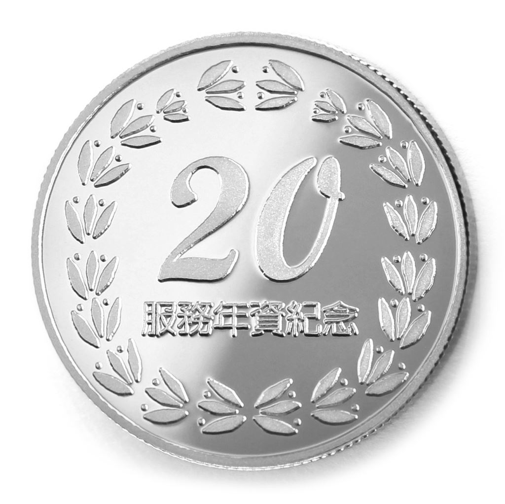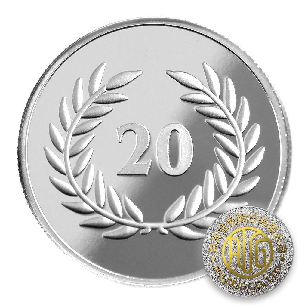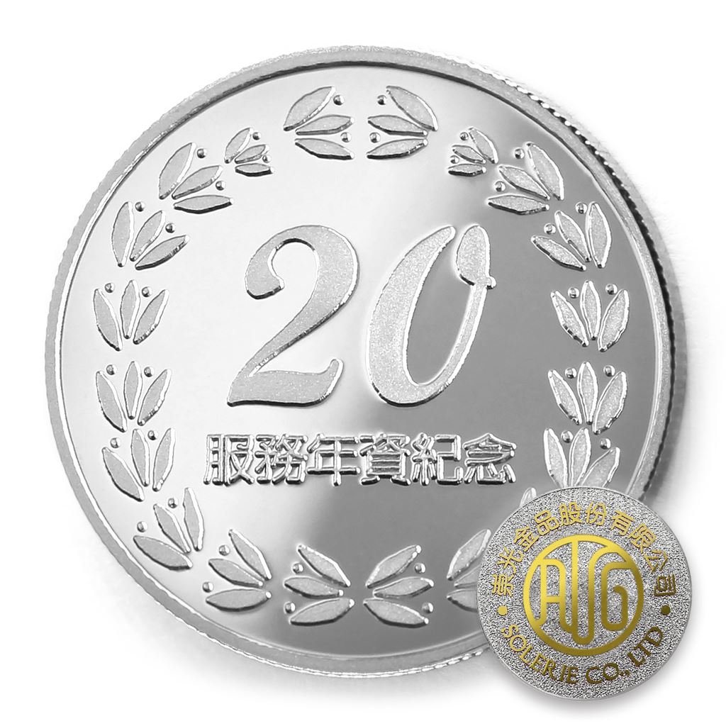 正面為年資20月桂圖樣,背面貼覆客製化銀箔
