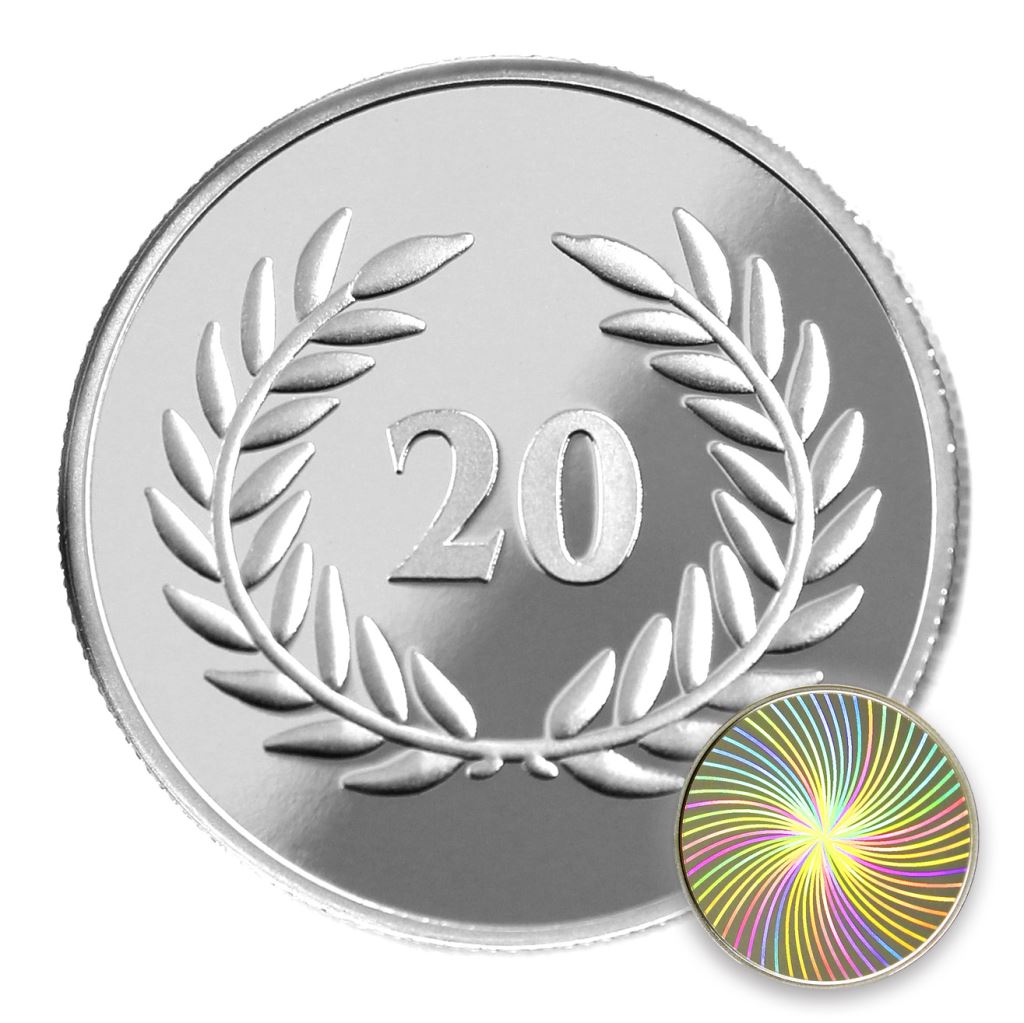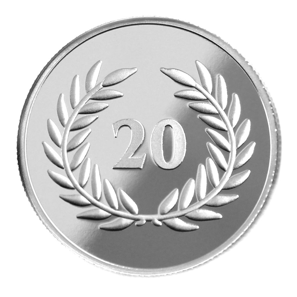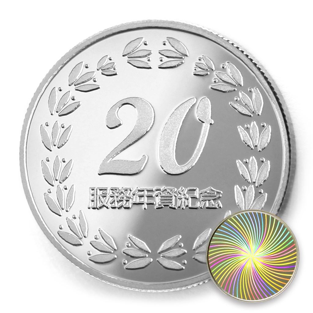 正面為年資20月桂圖樣,背面貼覆客製化銀箔