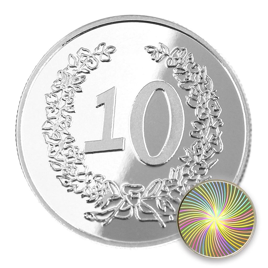 正面為年資10花邊圖樣,背面為幻彩客製化CNC雕刻