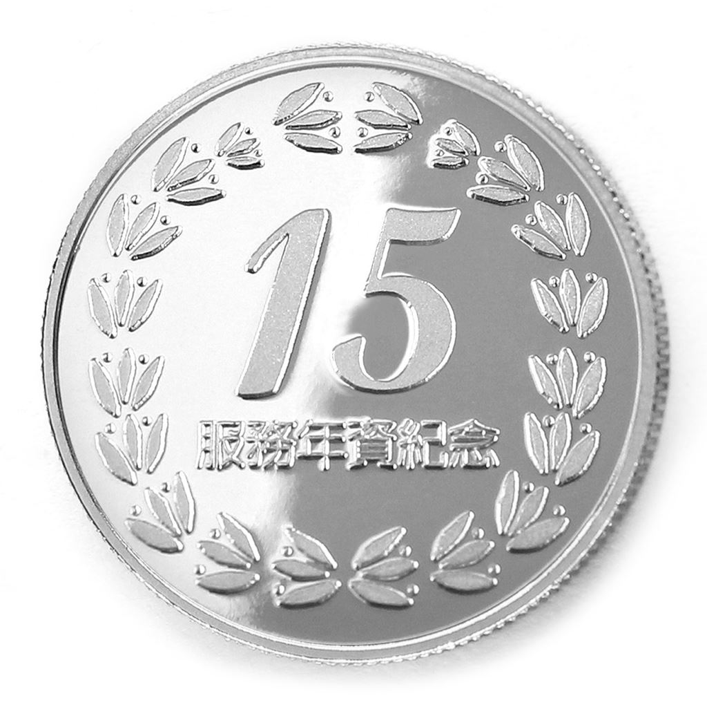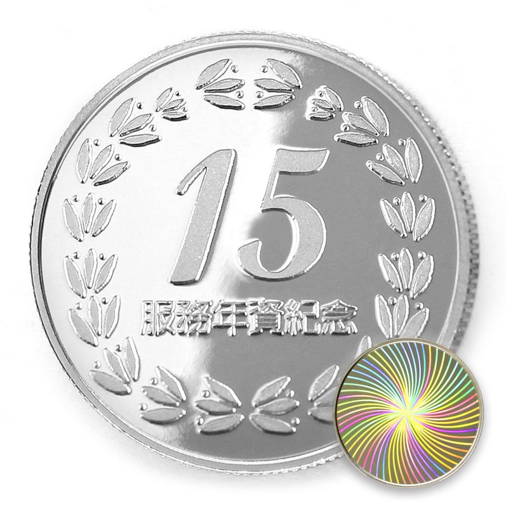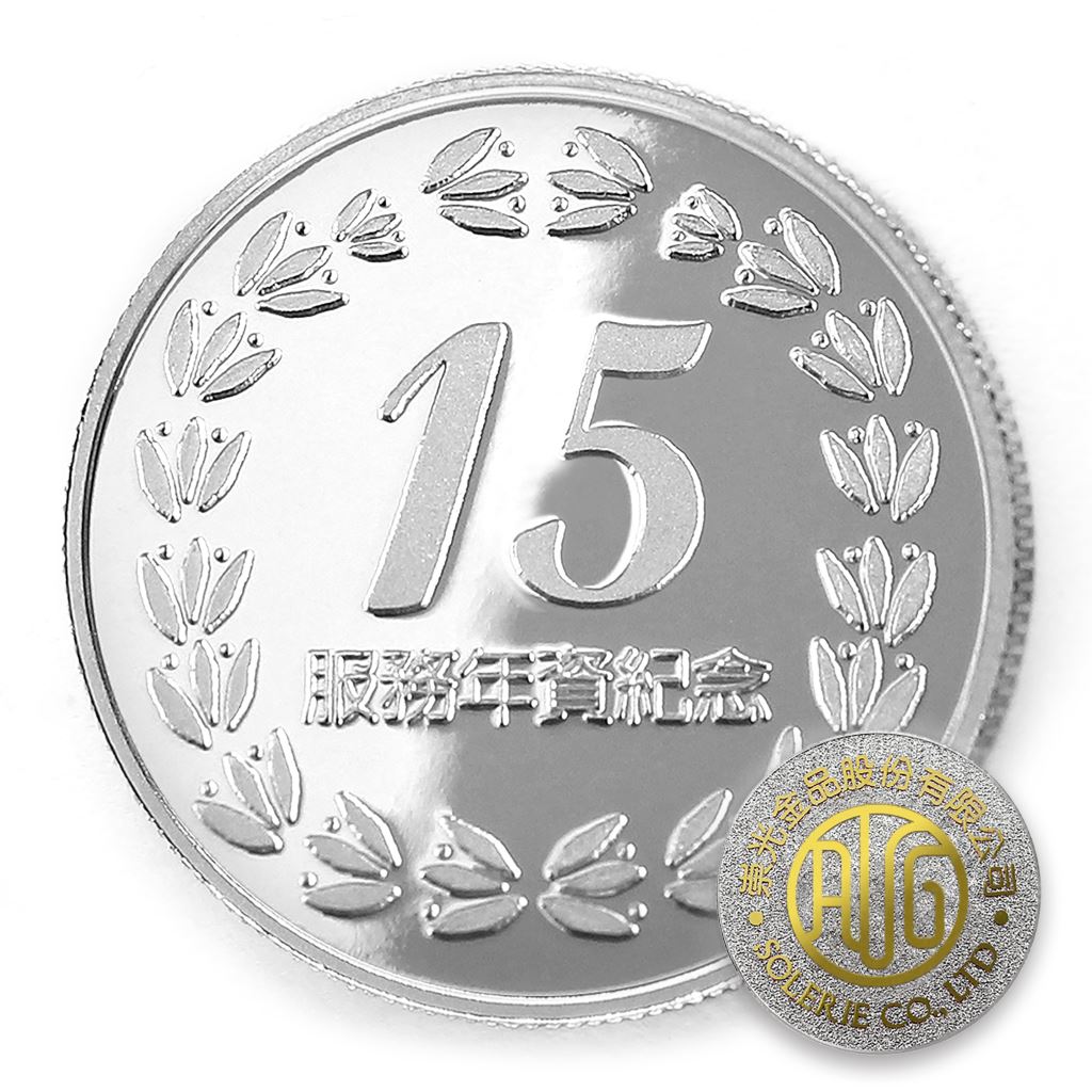 正面為年資15桂環圖樣,背面貼覆客製化銀箔
