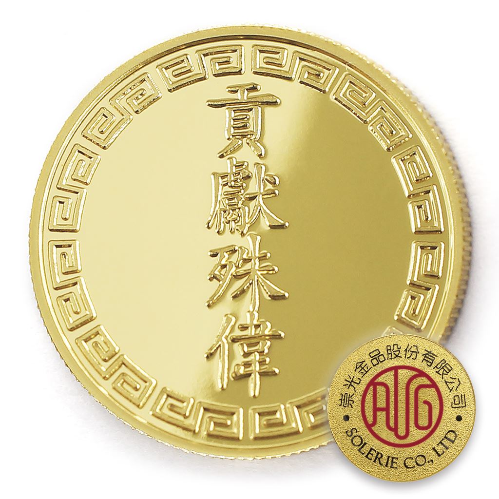 正面為貢獻殊偉圖樣,背面貼覆客製化金箔