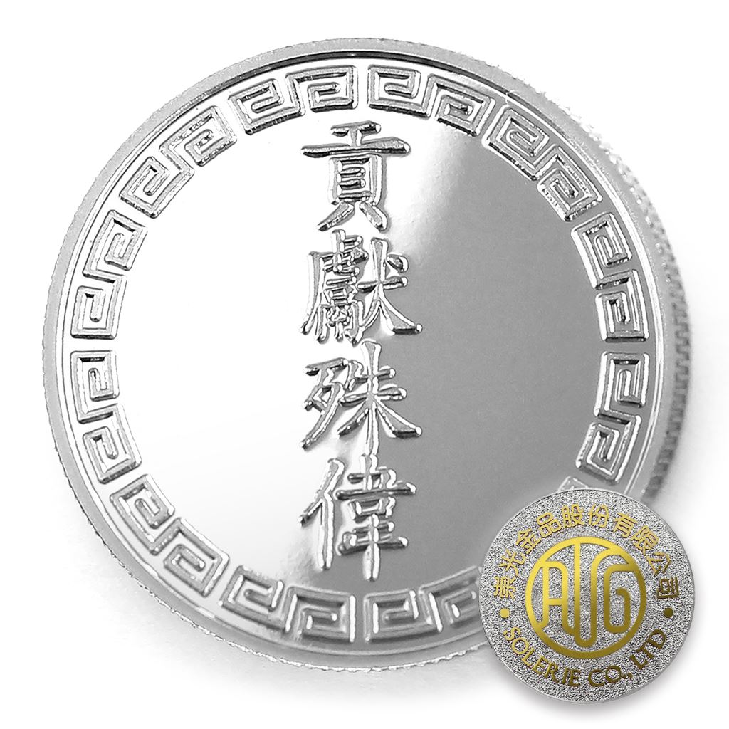 正面為貢獻殊偉圖樣,背面貼覆客製化銀箔