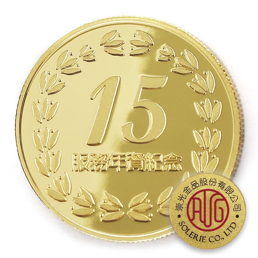正面為年資15桂環圖樣,背面貼覆客製化金箔