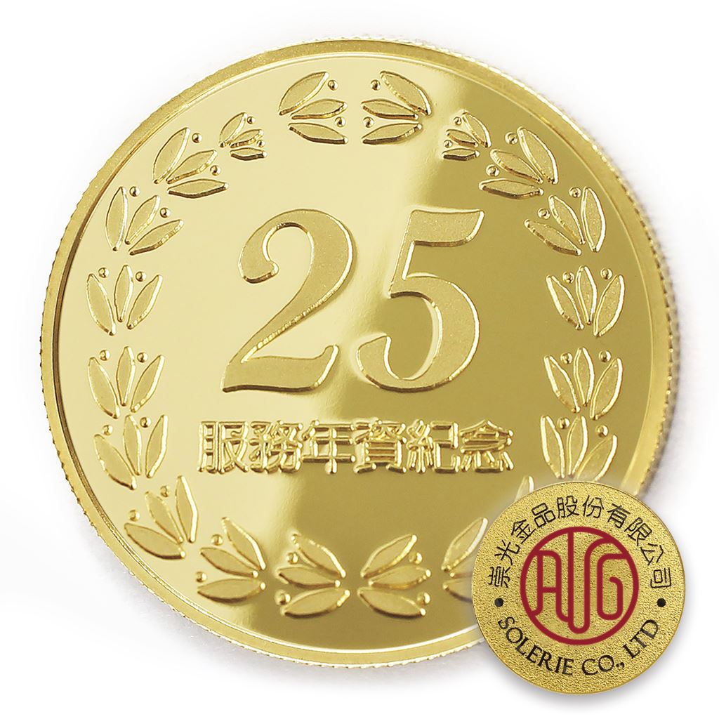 正面為年資25桂環圖樣,背面貼覆客製化金箔