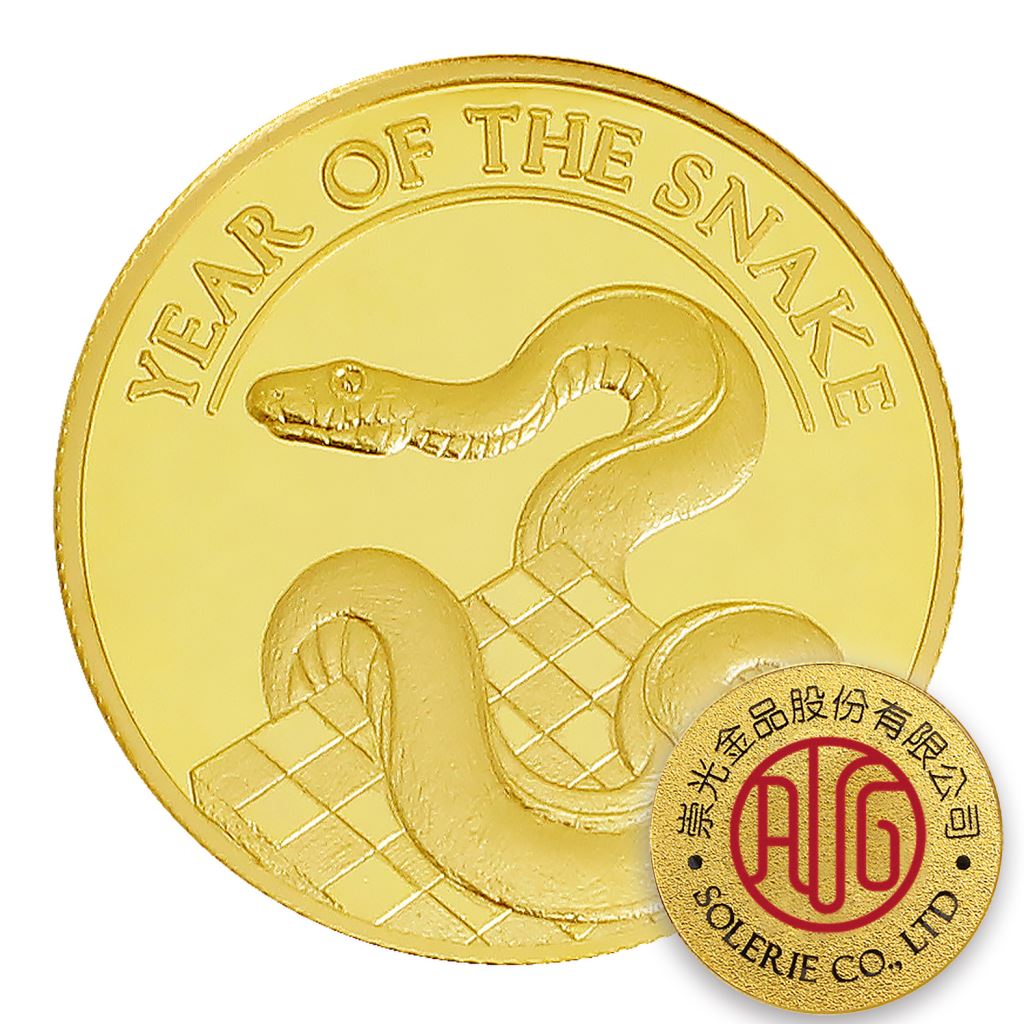 正面為蛇年生肖圖樣,背面貼覆客製化金箔