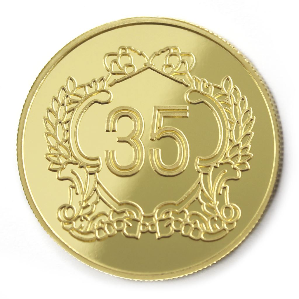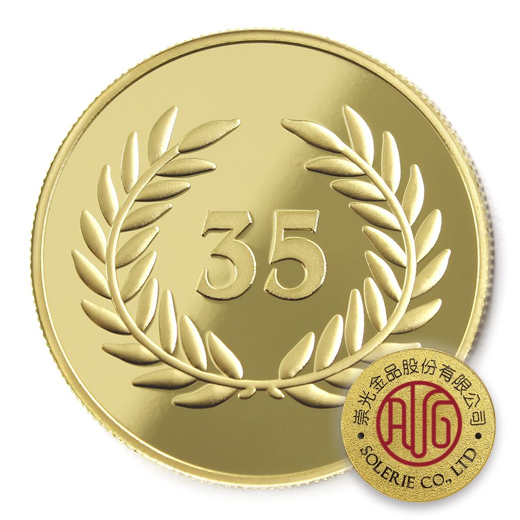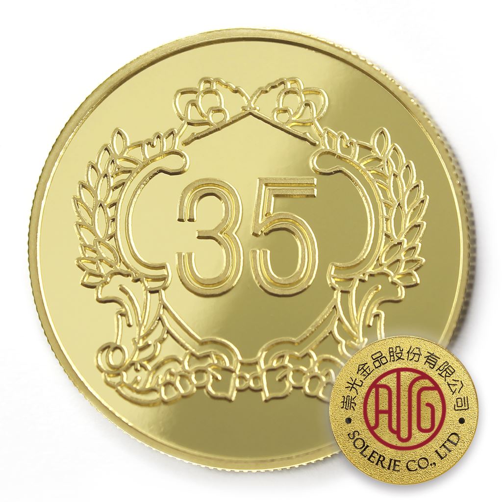 正面為年資35榮耀圖樣,背面貼覆客製化金箔
