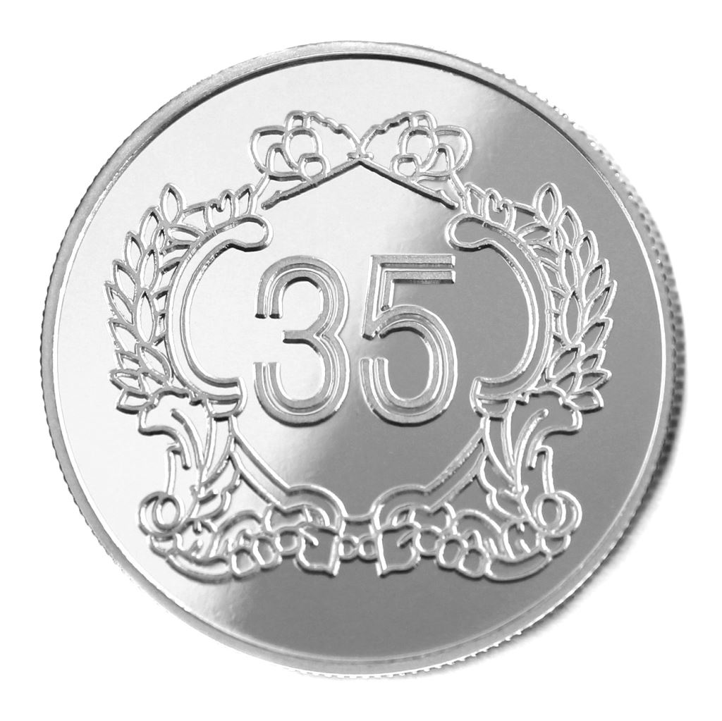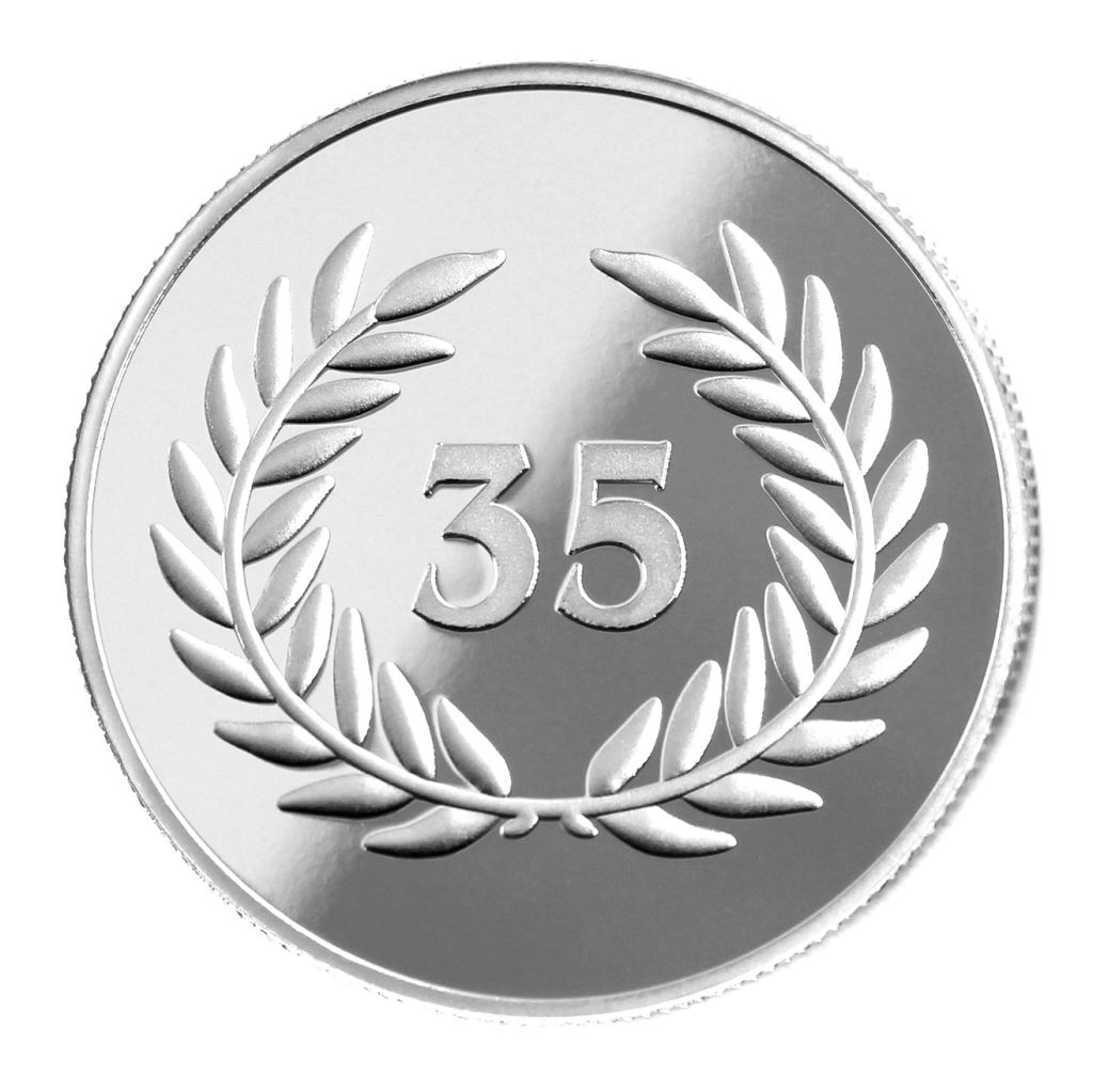 正面為年資35月桂圖樣,背面貼覆客製化銀箔