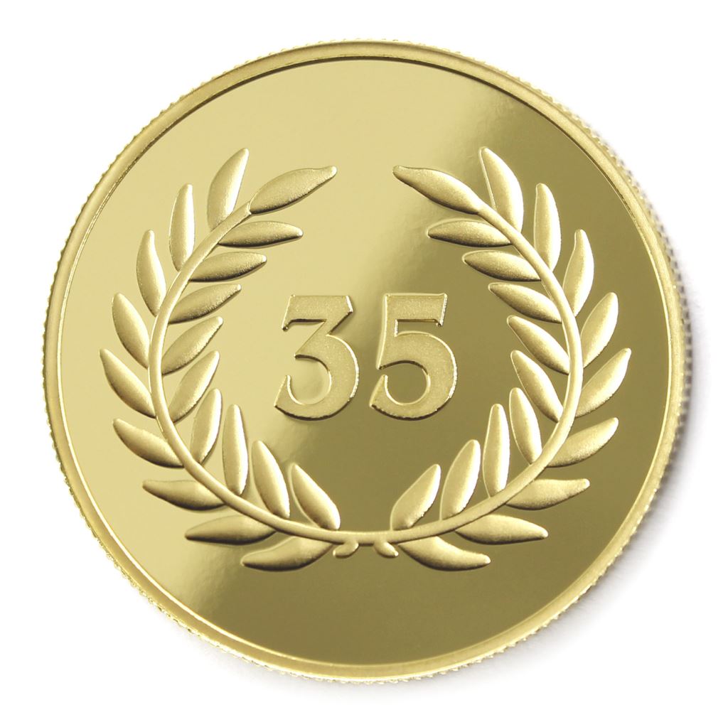 正面為年資35月桂圖樣,背面貼覆客製化金箔