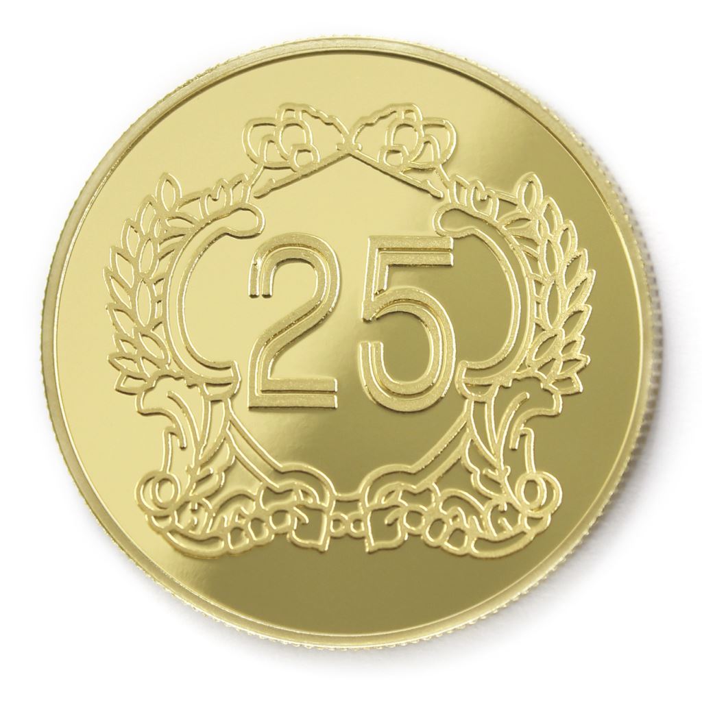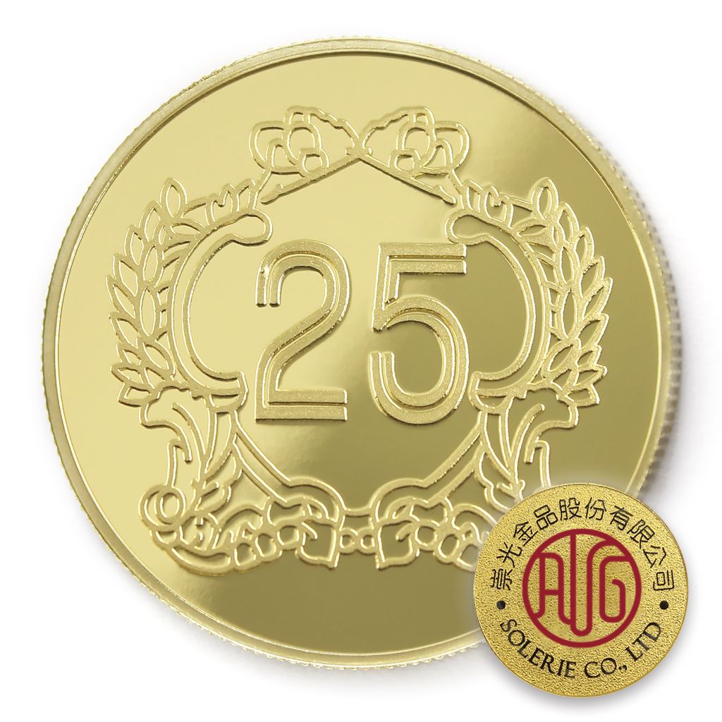 正面為年資25榮耀圖樣,背面貼覆客製化金箔