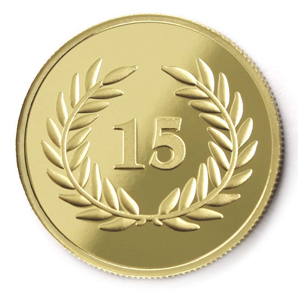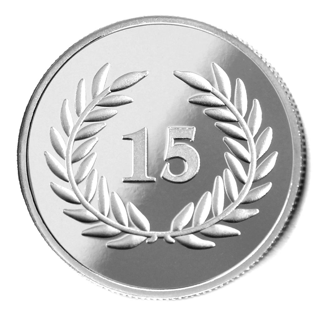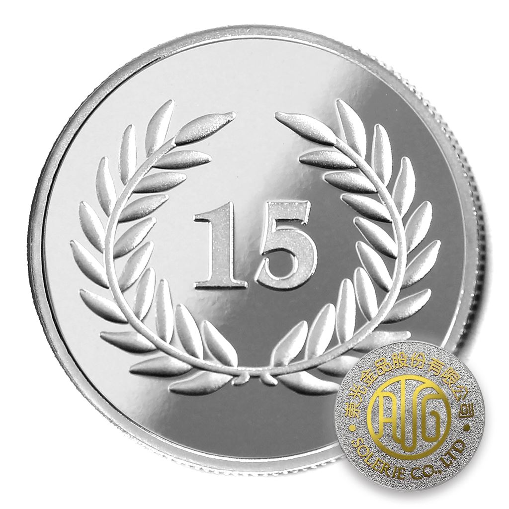 正面為年資15月桂圖樣,背面貼覆客製化銀箔
