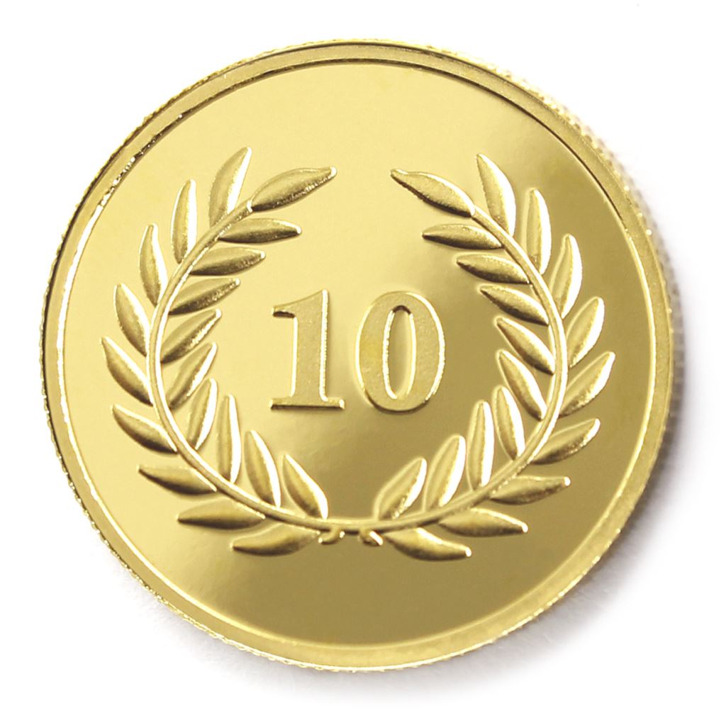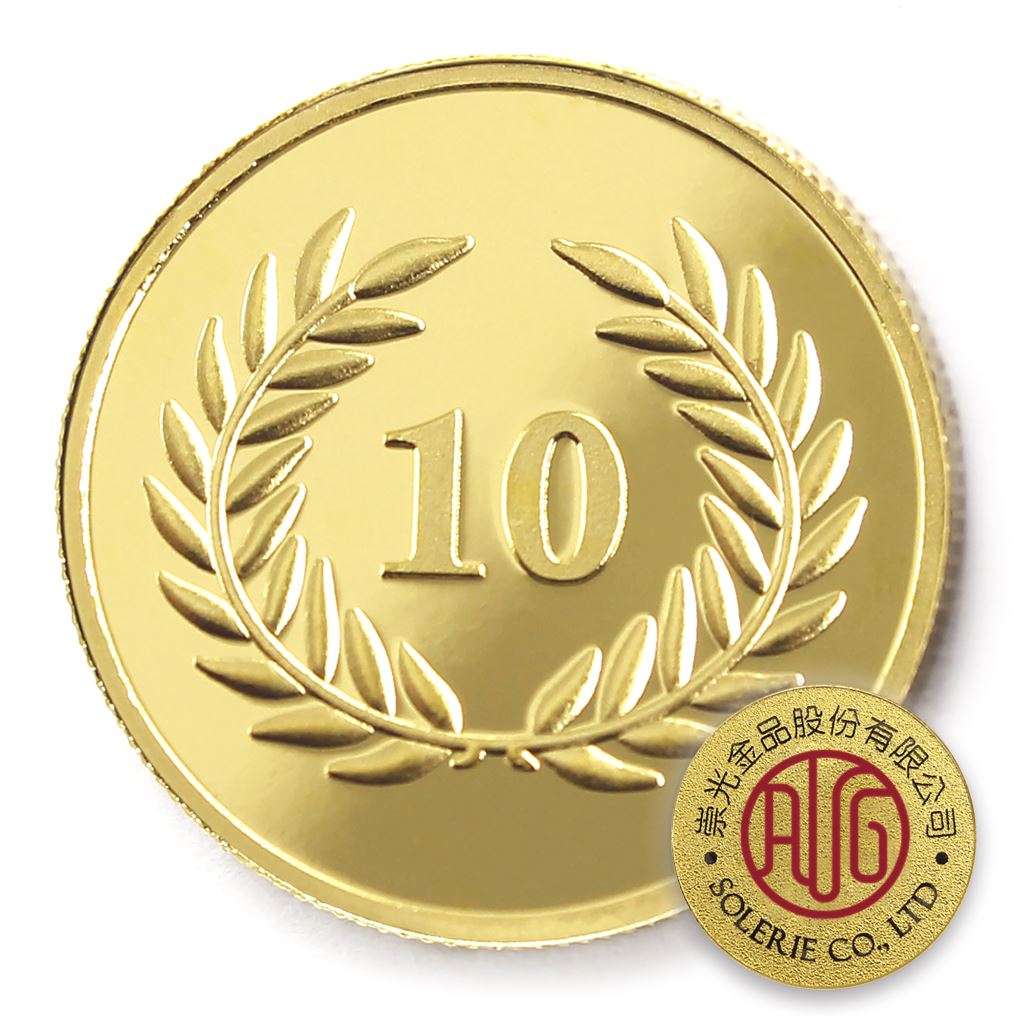 正面為年資10月桂圖樣,背面貼覆客製化金箔