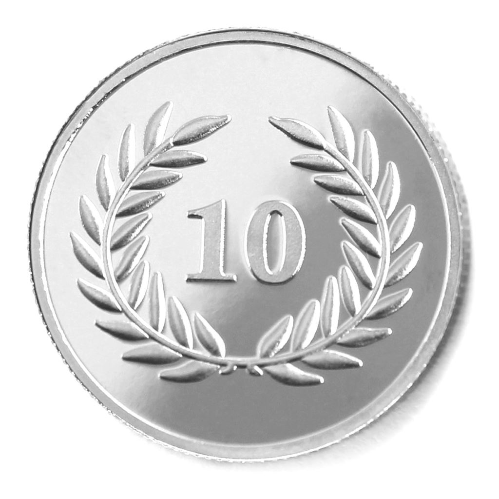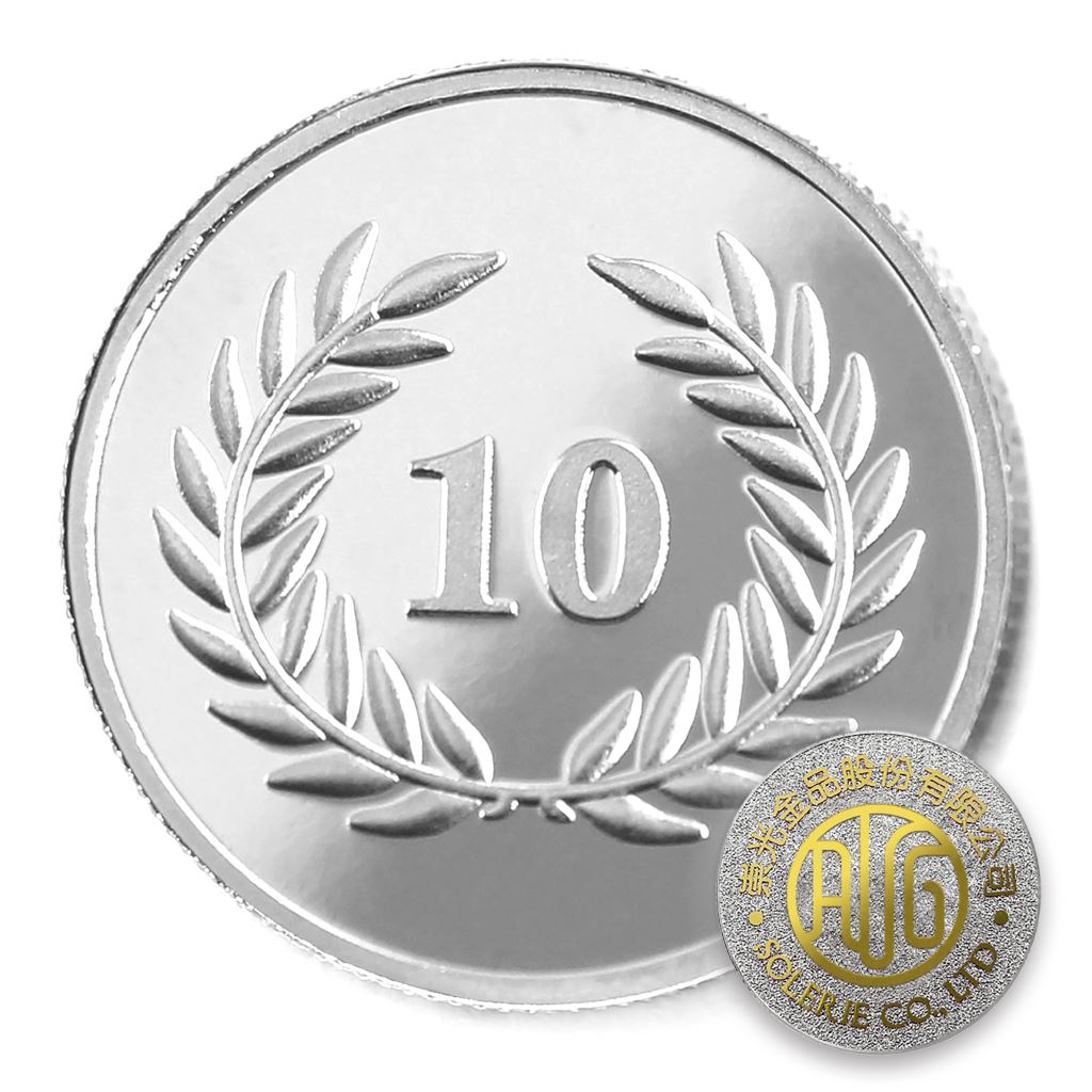 正面為年資10月桂圖樣,背面貼覆客製化銀箔