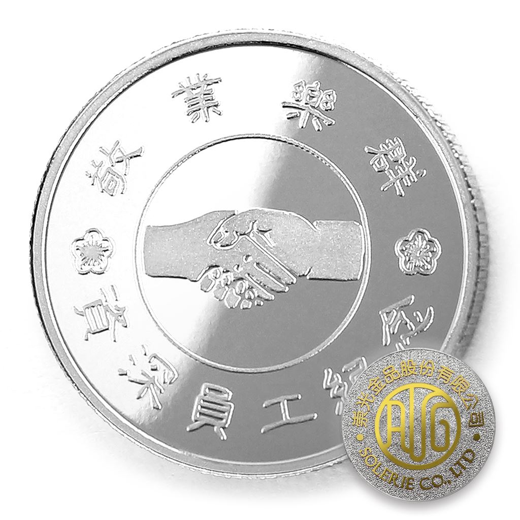 正面為資深員工敬業圖樣,背面貼覆客製化銀箔