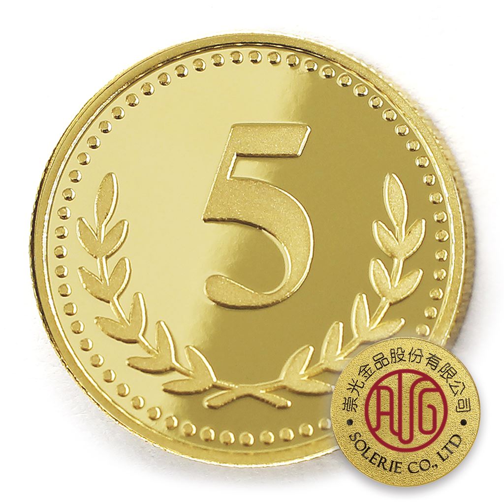 正面為年資5半桂圖樣,背面貼覆客製化金箔