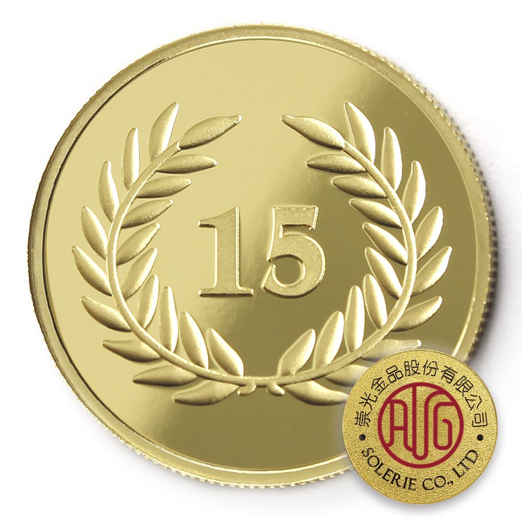 正面為年資15月桂圖樣,背面為鏡面客製化CNC雕刻