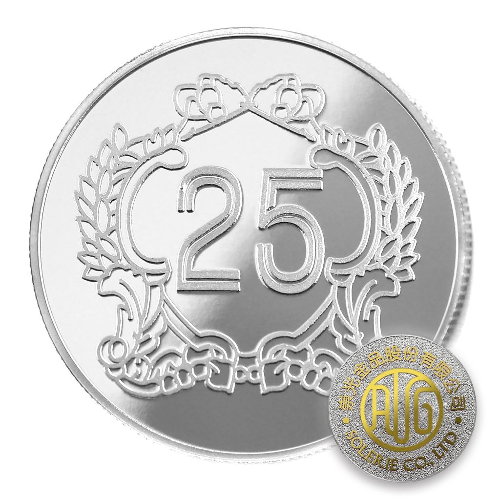 正面為年資25榮耀圖樣,背面貼覆客製化銀箔