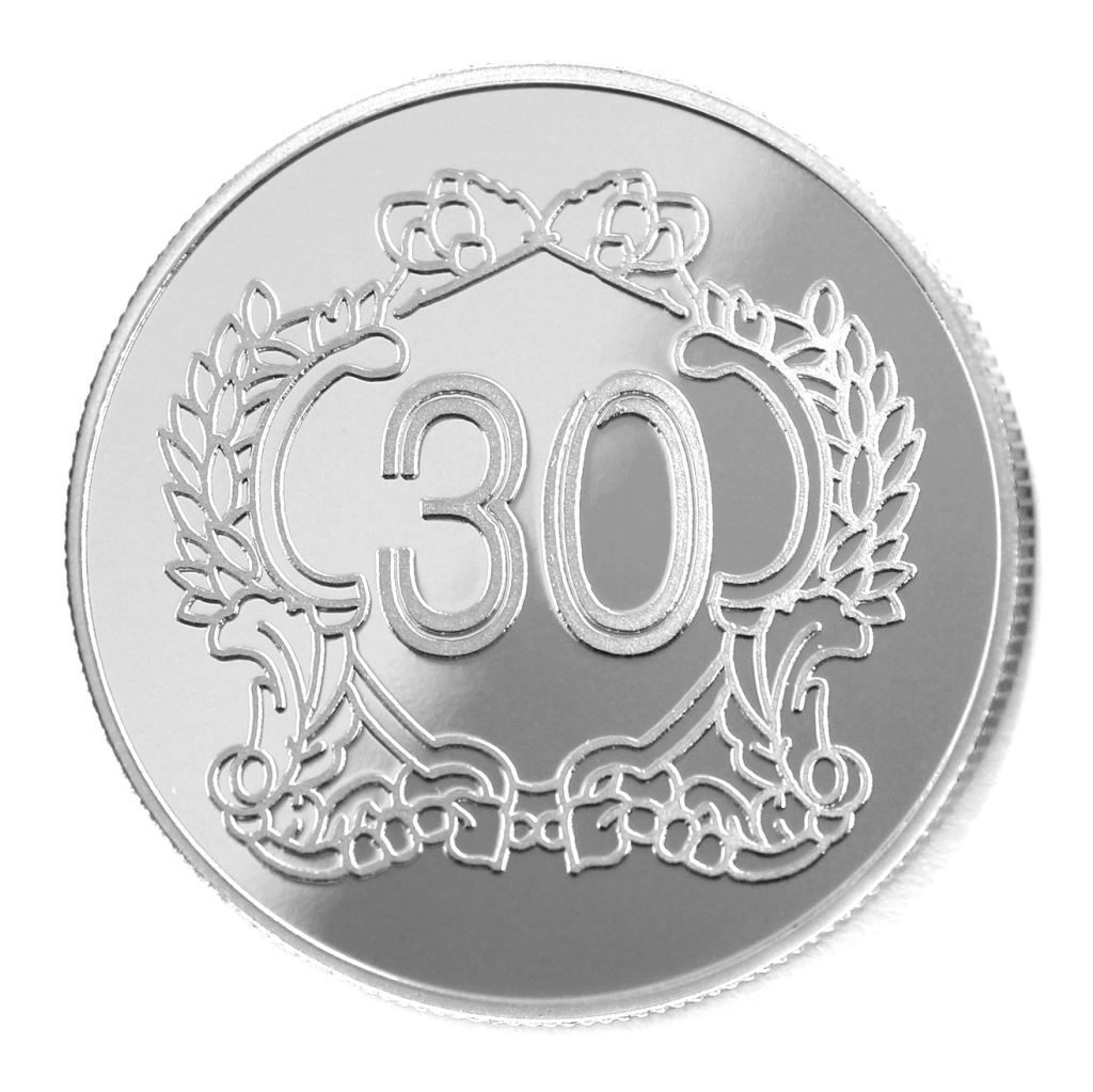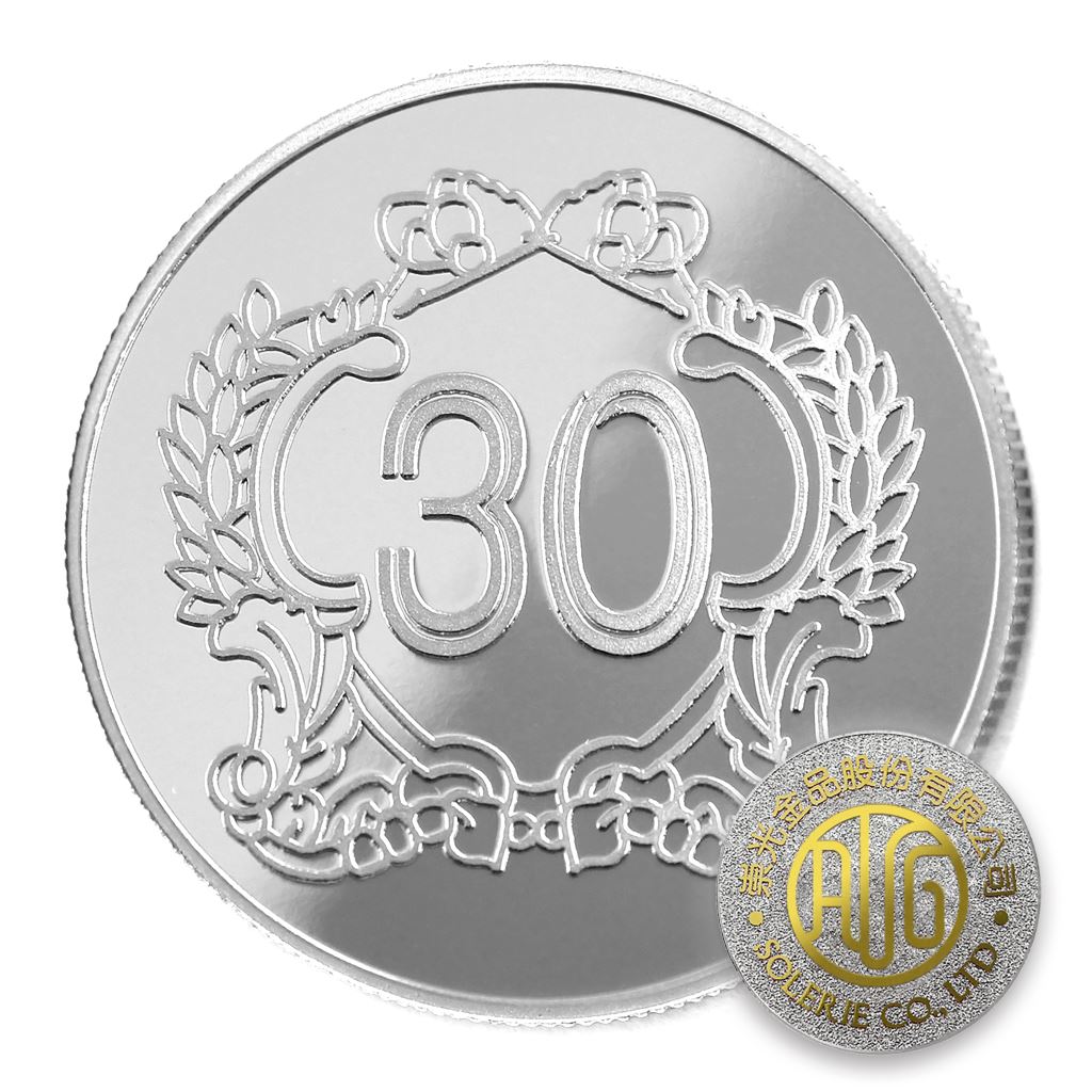 正面為年資30榮耀圖樣,背面貼覆客製化銀箔