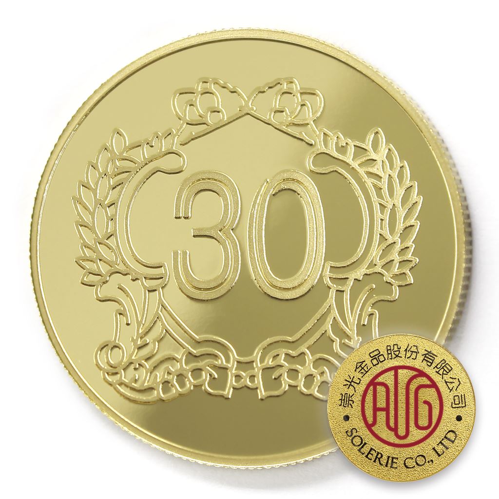 正面為年資30榮耀圖樣,背面貼覆客製化金箔