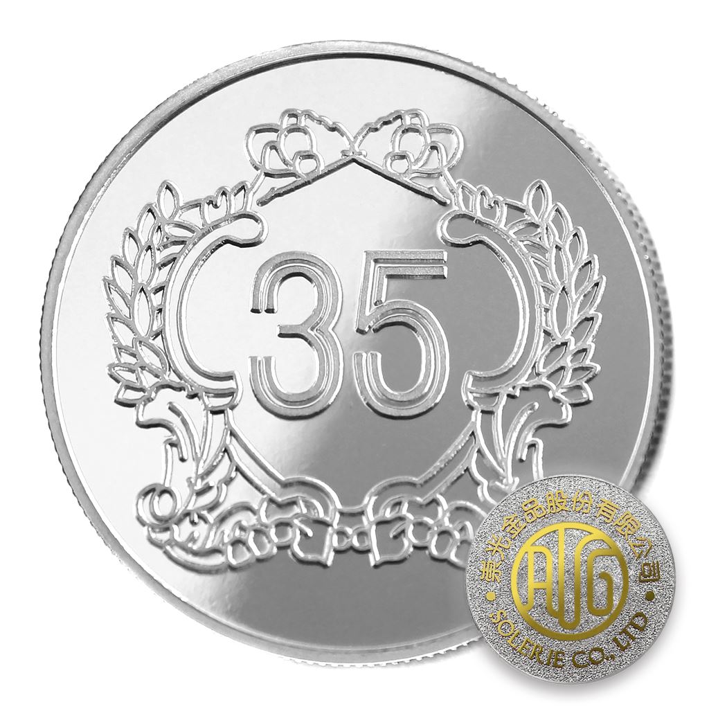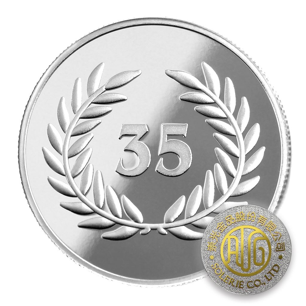 正面為年資35榮耀圖樣,背面貼覆客製化銀箔