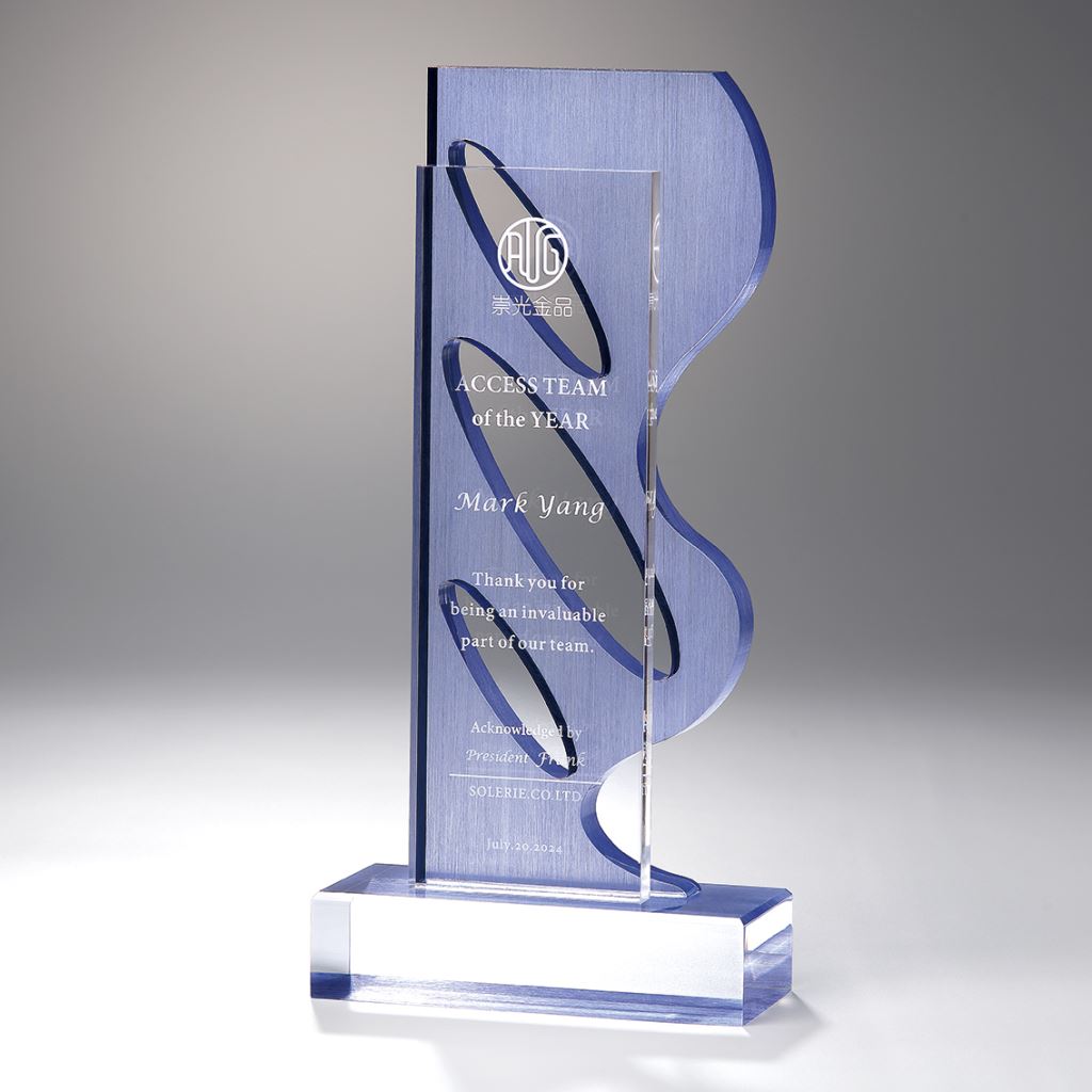 崇光金品的壓克力獎盃以輕盈、現代感十足的設計風格深受企業與活動單位青睞。選用高透明度壓克力材質,具有玻璃般的透光質感與較佳的耐用性,且不易碎裂,適合各類型活動頒獎或紀念用途。壓克力材質本身可塑性高,能切割成多種造型,亦可搭配層疊設計或異材質結合,如金屬飾板、木座或水晶底座,增添立體感與質感層次。