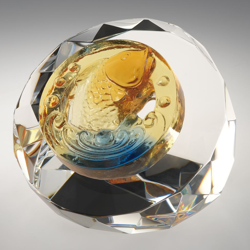 本商品為琉璃結合水晶的複合材質獎座。